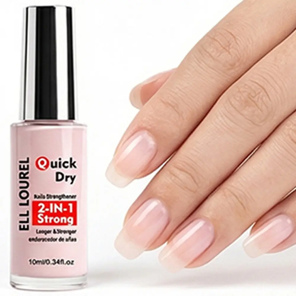 ELL LOUREL New Arrival 2 in 1 Natural Nude Pink Nail Hardener Dries Naturally Fastly, Alcohol-Free Formula, Designed to Strengthen and Nourish Thin and Soft Nails, Perfect Gift for Various Holidays, Nail Strengthener to Get Hard Nail Shield. Nail Care Oil