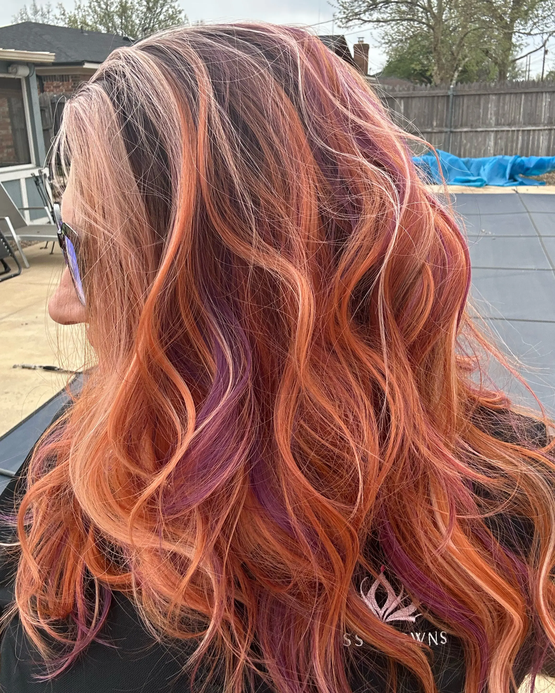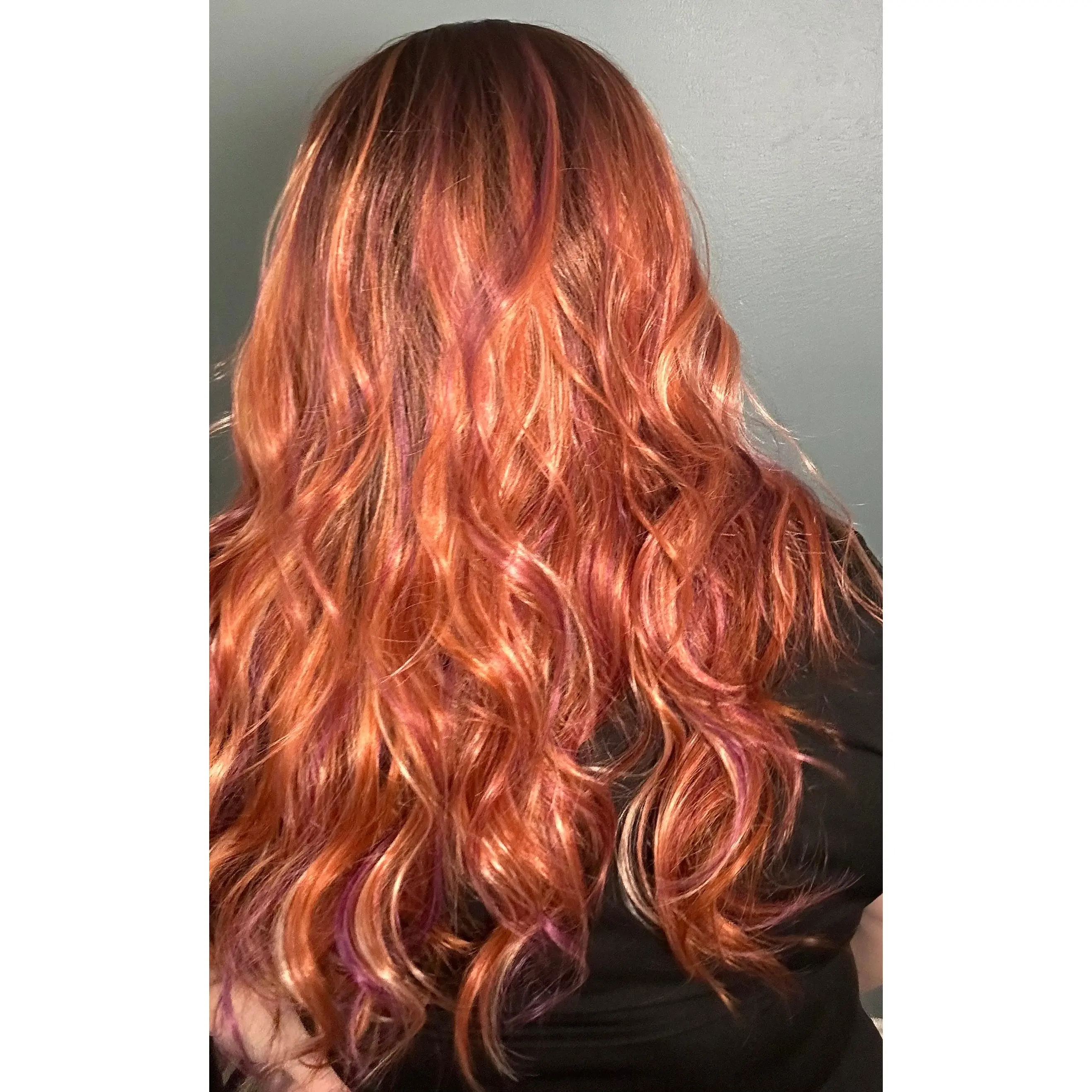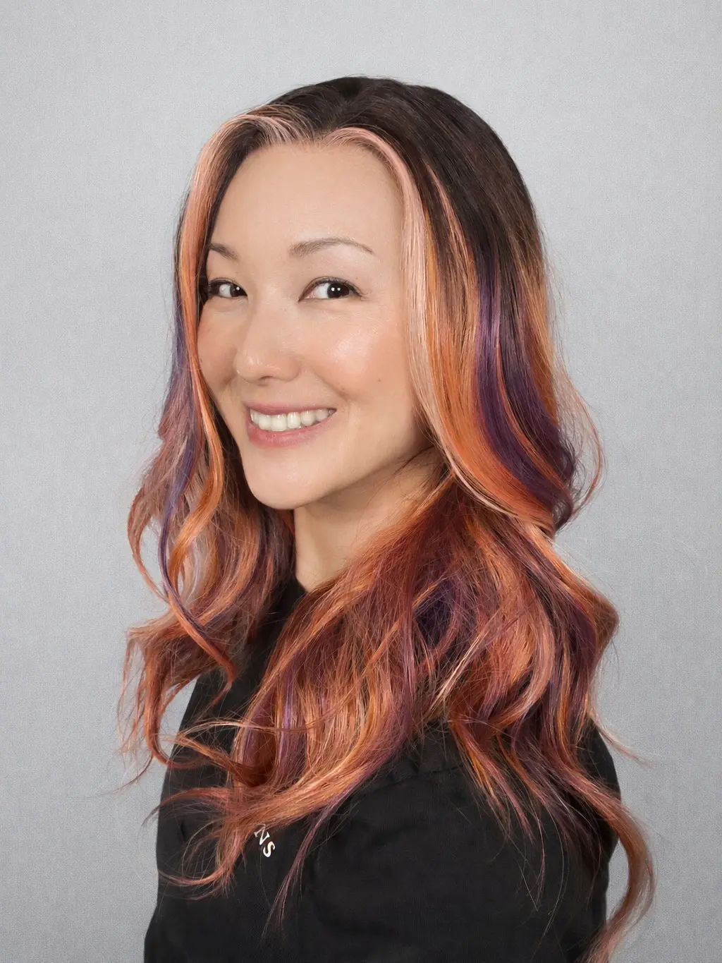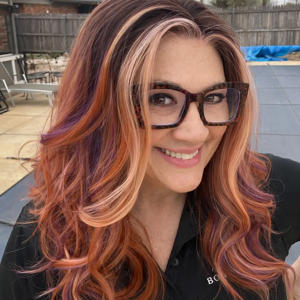 Meet Leilani in Flipped Purple ClamShell — a bold, beachy blend of sunset apricot, shell pink, and vivid purple ribbons layered over a deeper brunette base. This color has major movement and personality, with warm peachy-coral tones taking the lead while pops of purple peek through for that playful twist. She’s bright, artsy, and a little rebellious in the best possible way.