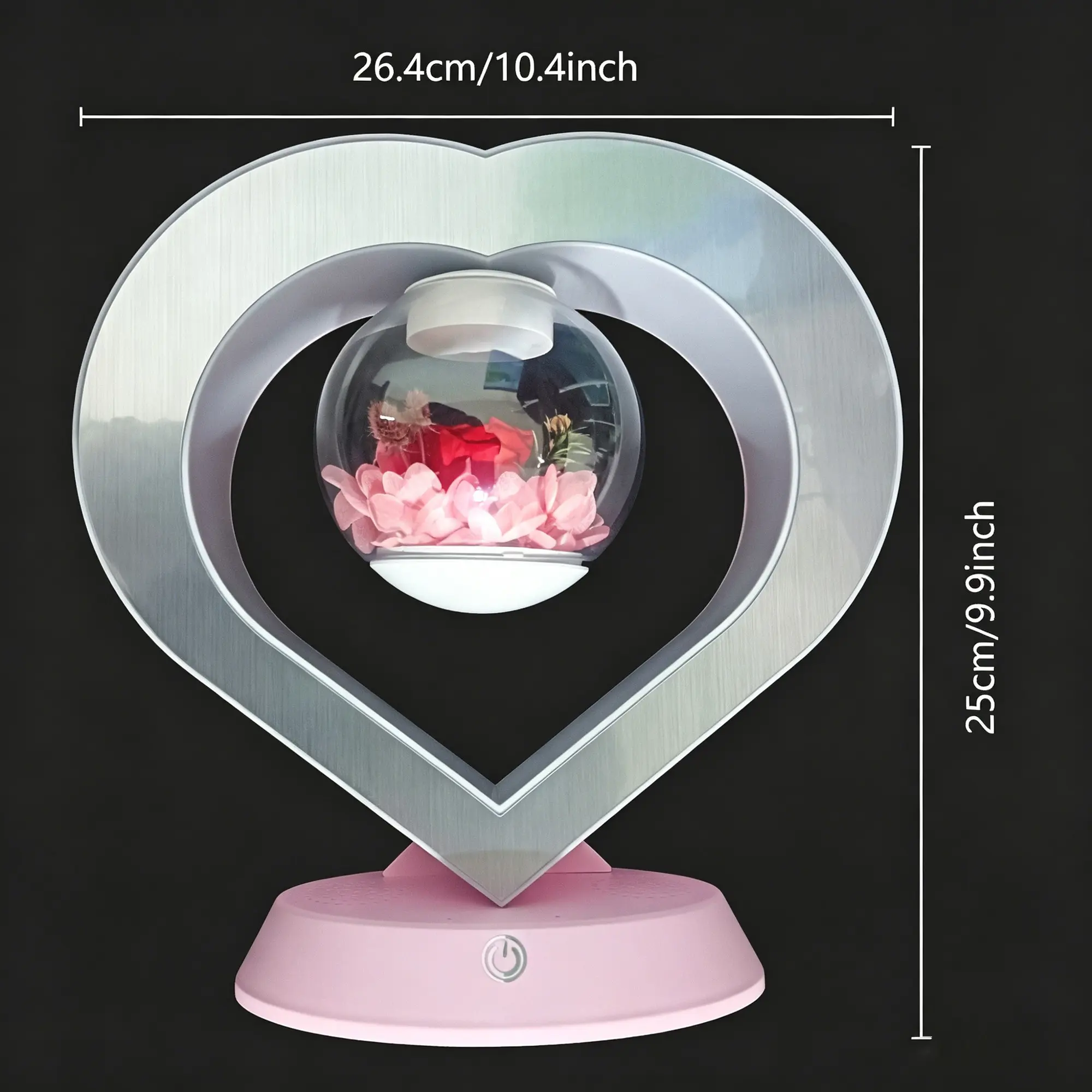Magnetic Levitation Preserved Rose Flower Table Lamp, Adjustable Color 5W LED Light with Pink Bluetooth Speaker, Home Indoor Decoration Night Light, Christmas, Valentine's Day, Mother's Day Gifts