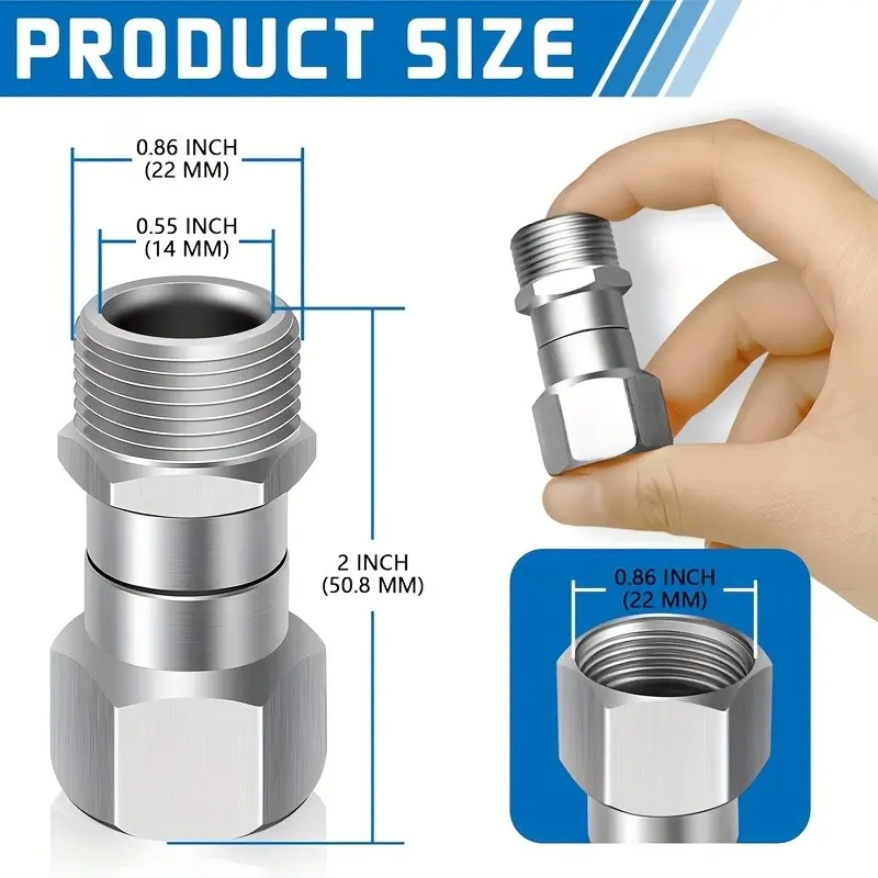 High Pressure Washer Rotating Adapter, M22-14mm/15mm to M22 Anti-Twist Connector, 360 Degree Rotation, for Water Gun, Hose