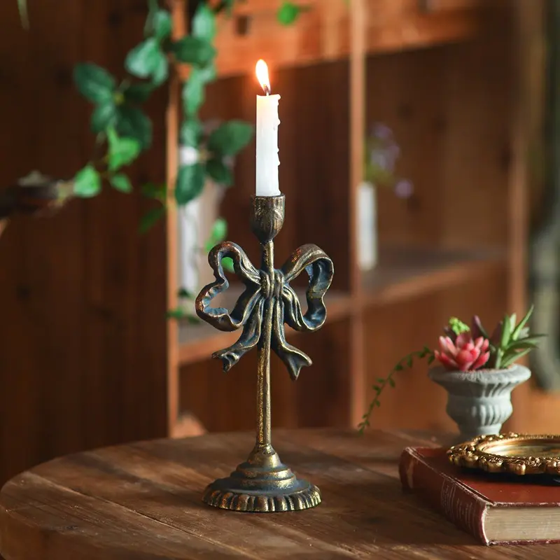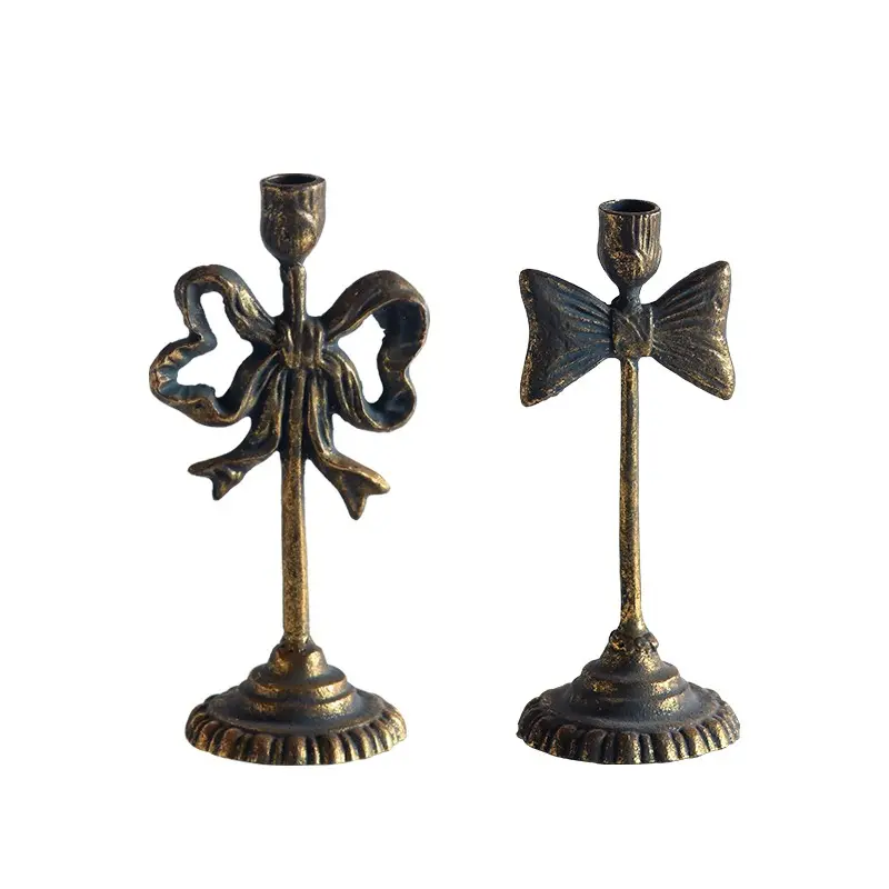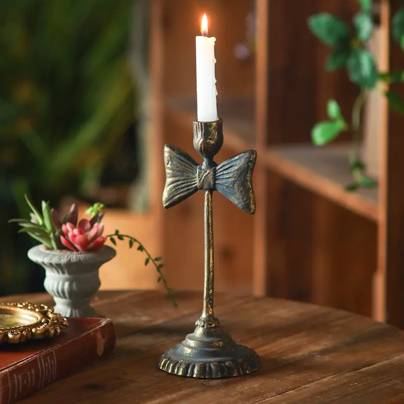 American-Style Vintage Distressed Ironwork Carved Candlestick, Decorative Handicrafts for Living Room Entrance Display, Creative Home Décor Item
