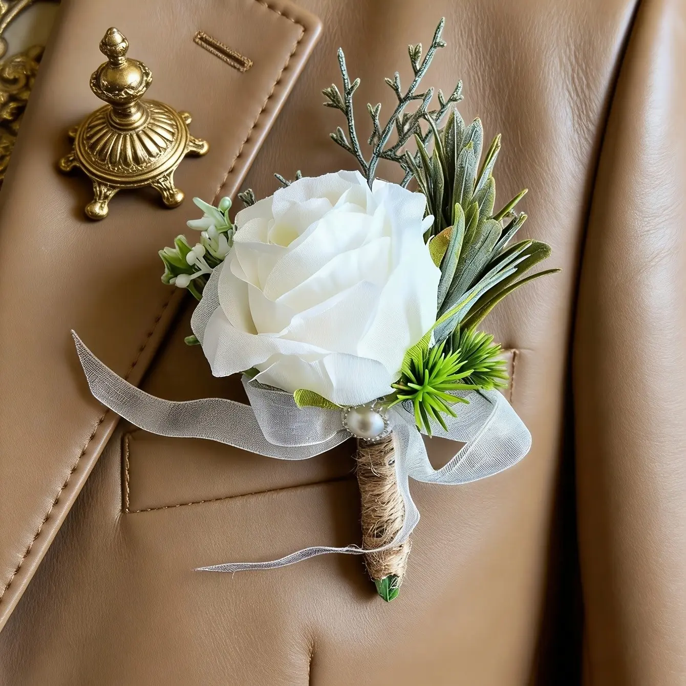 【Elegant Accent】: A refined floral accessory that complements formal wear, making it a standout piece.