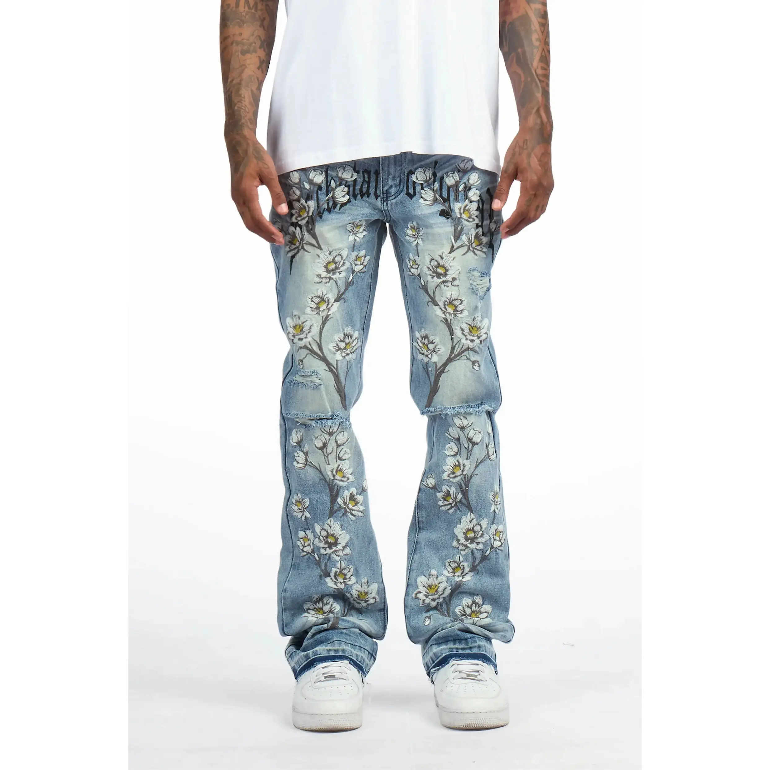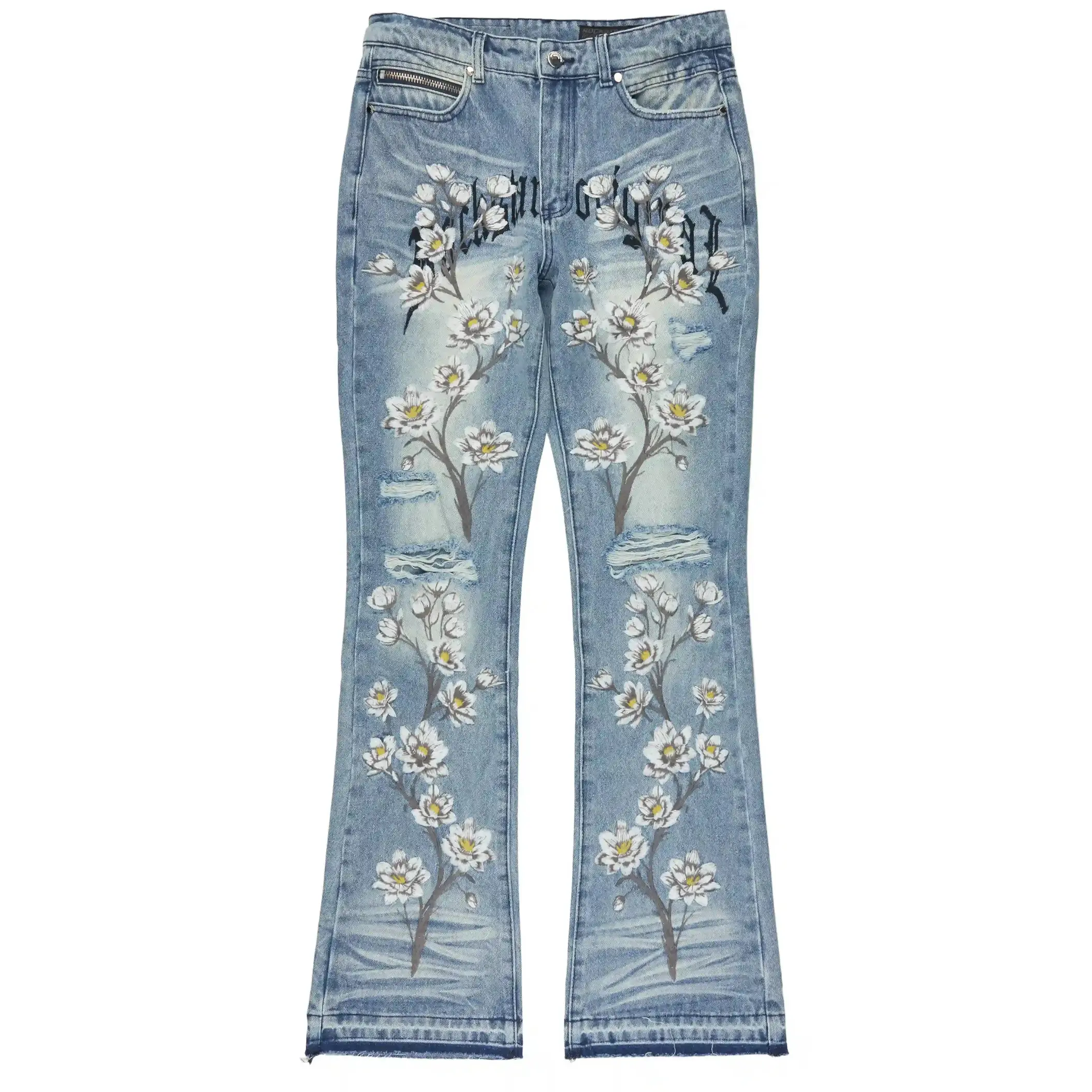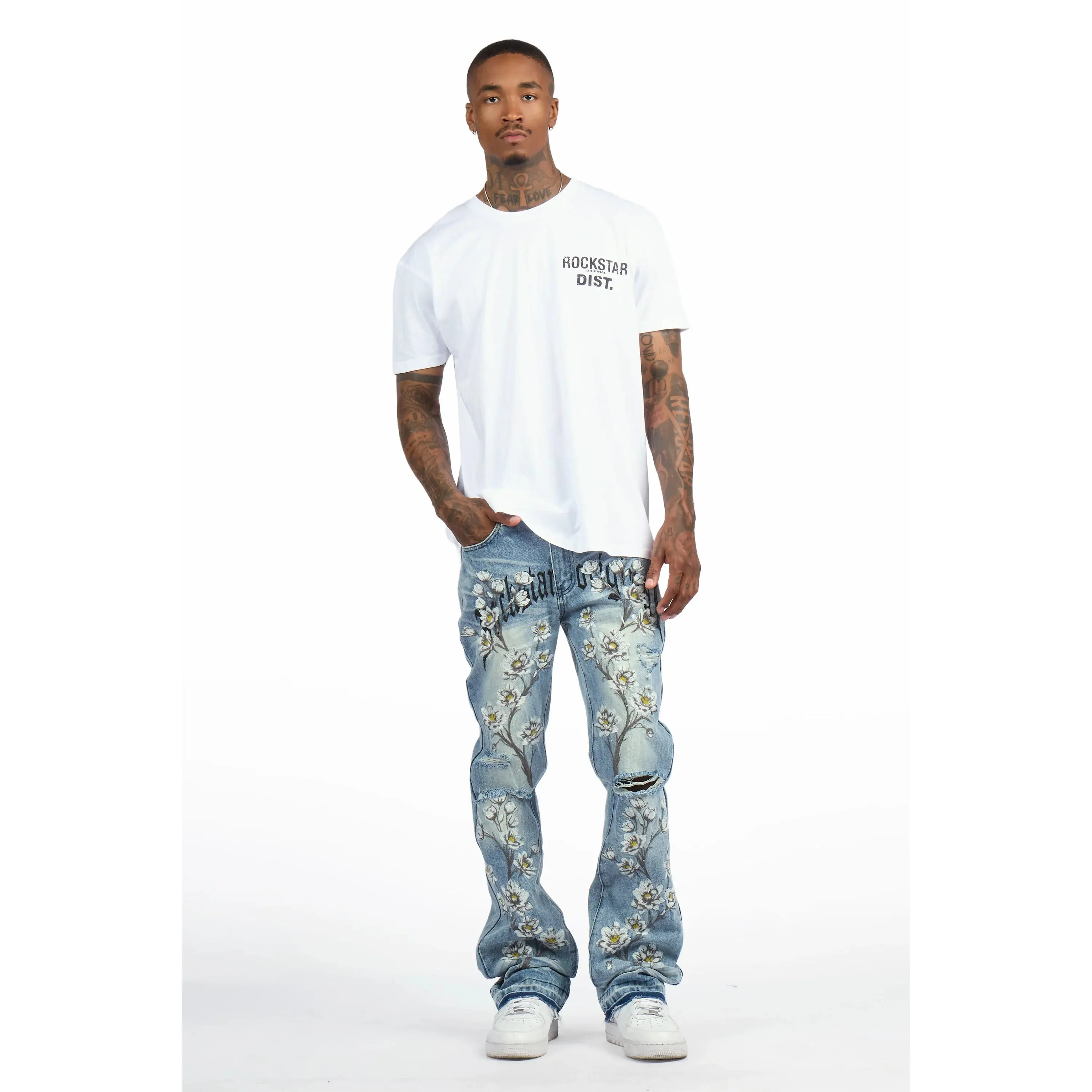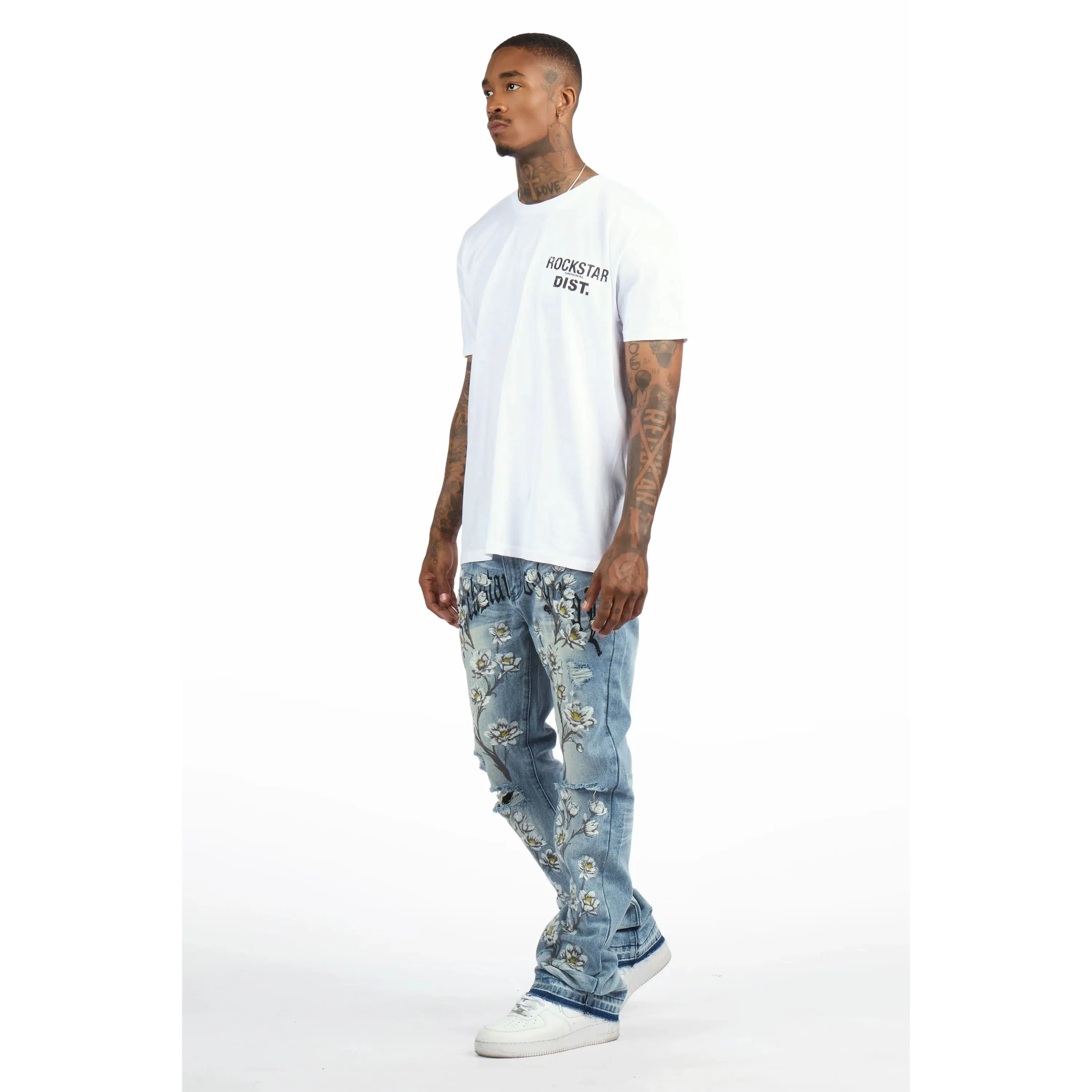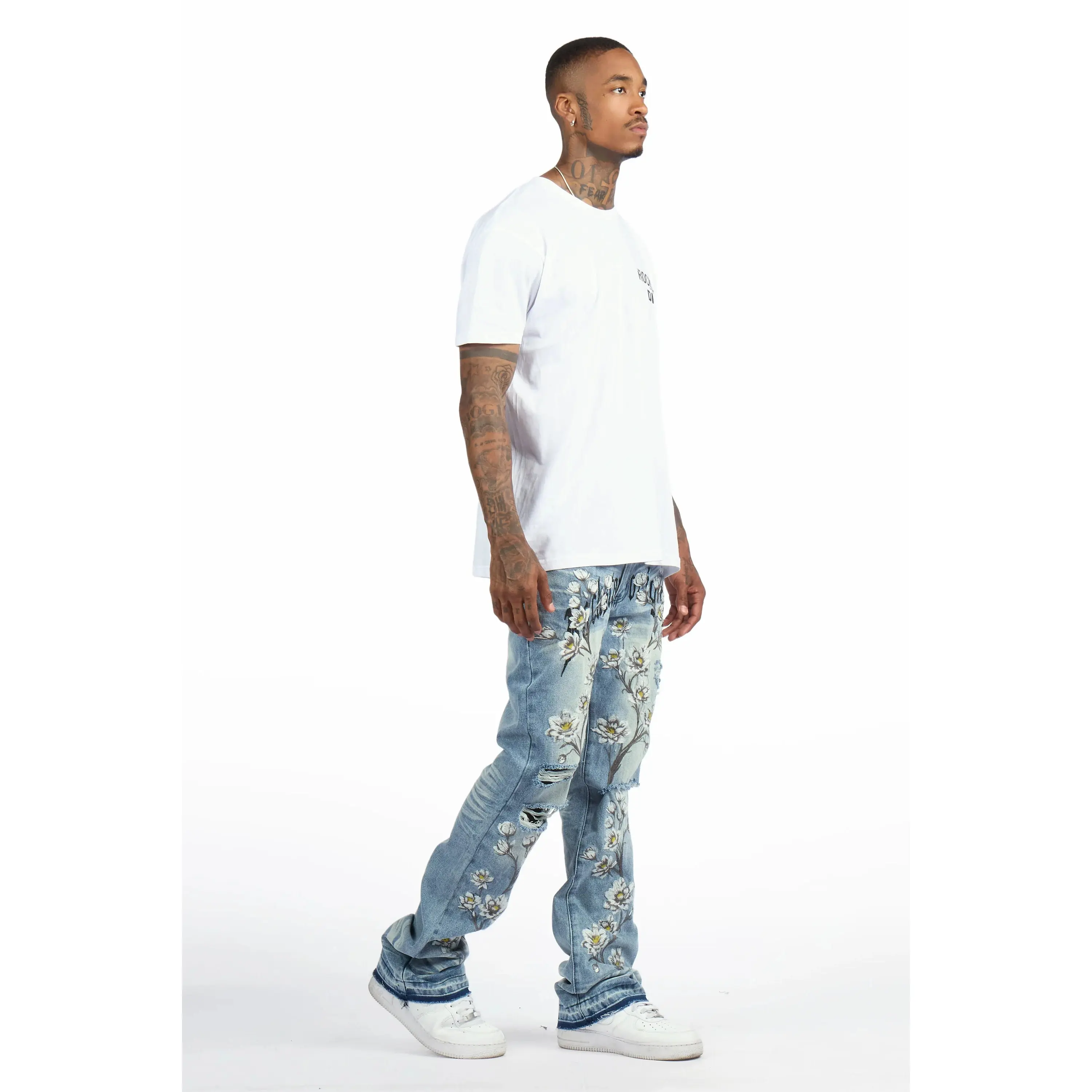 I Be Jeweled Stacked Skinny Flare Jeans - Light Blue