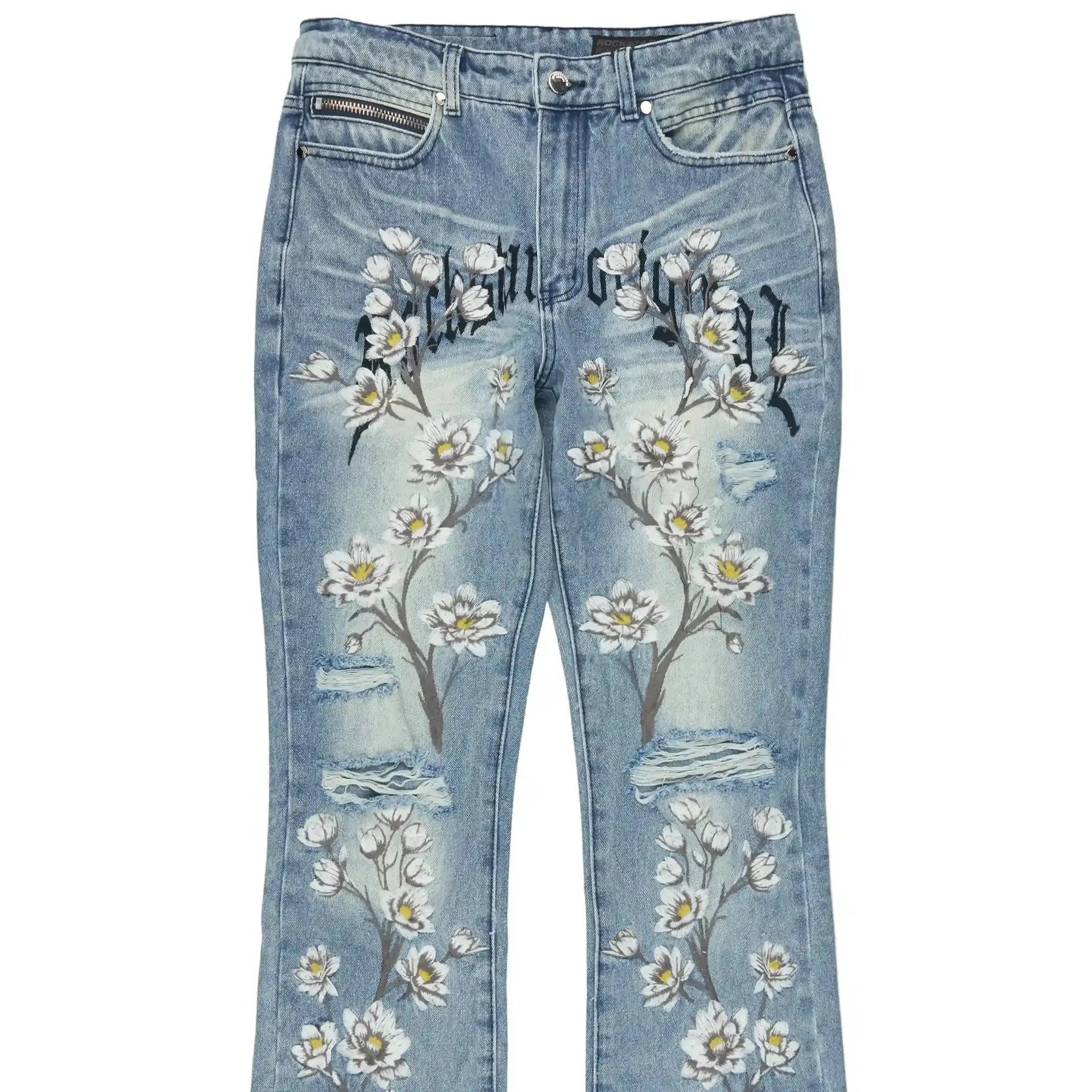 Through It Ripped Skinny Flared Jeans - Vintage Blue Wash