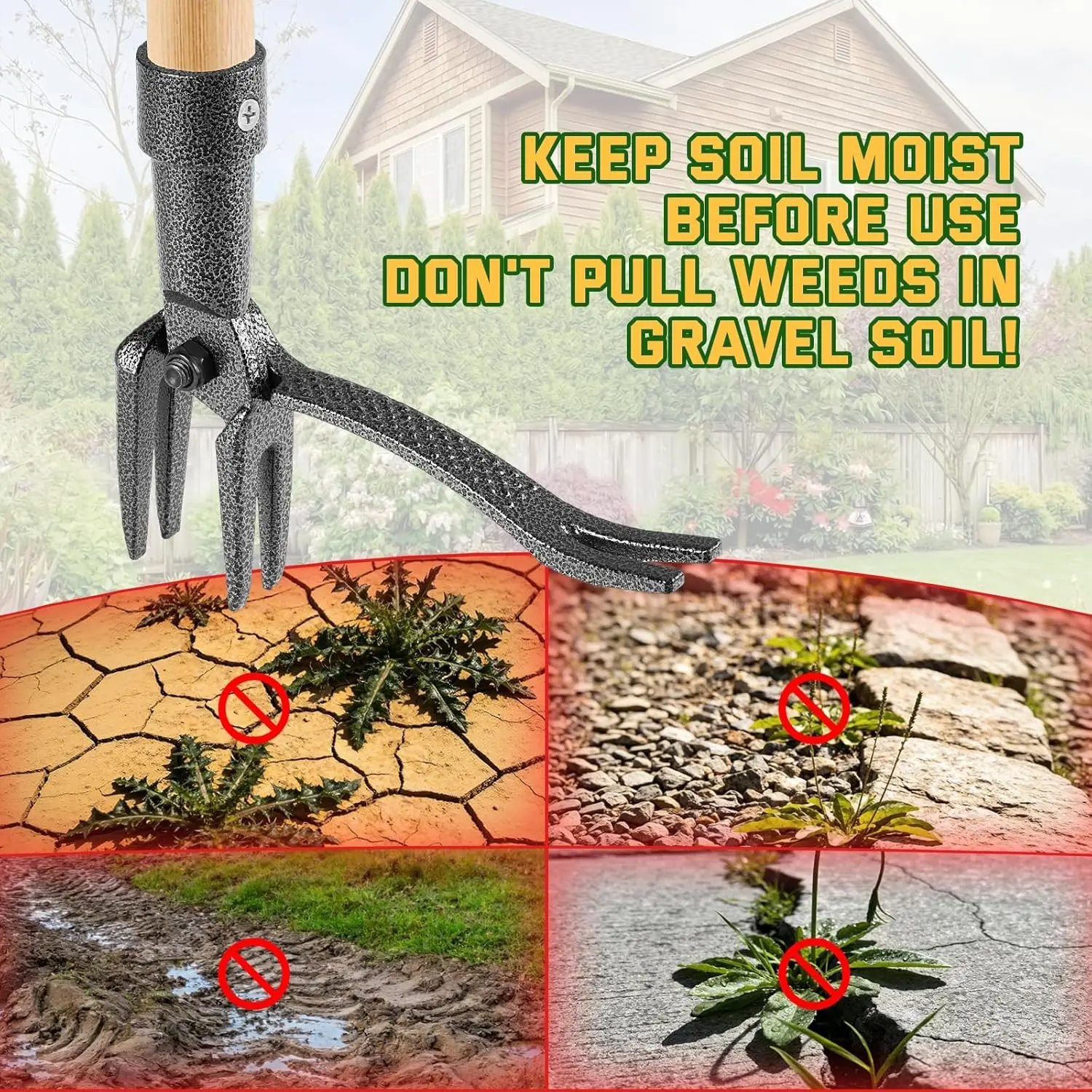 ·HEAVY-DUTY 4-CLAW STEEL CONSTRUCTION:Engineered with four rust-resistant stainless steel claws that penetrate deep into various soil types. The high-strength steel construction ensures durability when removing stubborn weeds like burdock and crabgrass. Moisture-proof and wear-resistant claws maintain sharpness season after season, providing reliable performance in all gardening conditions.