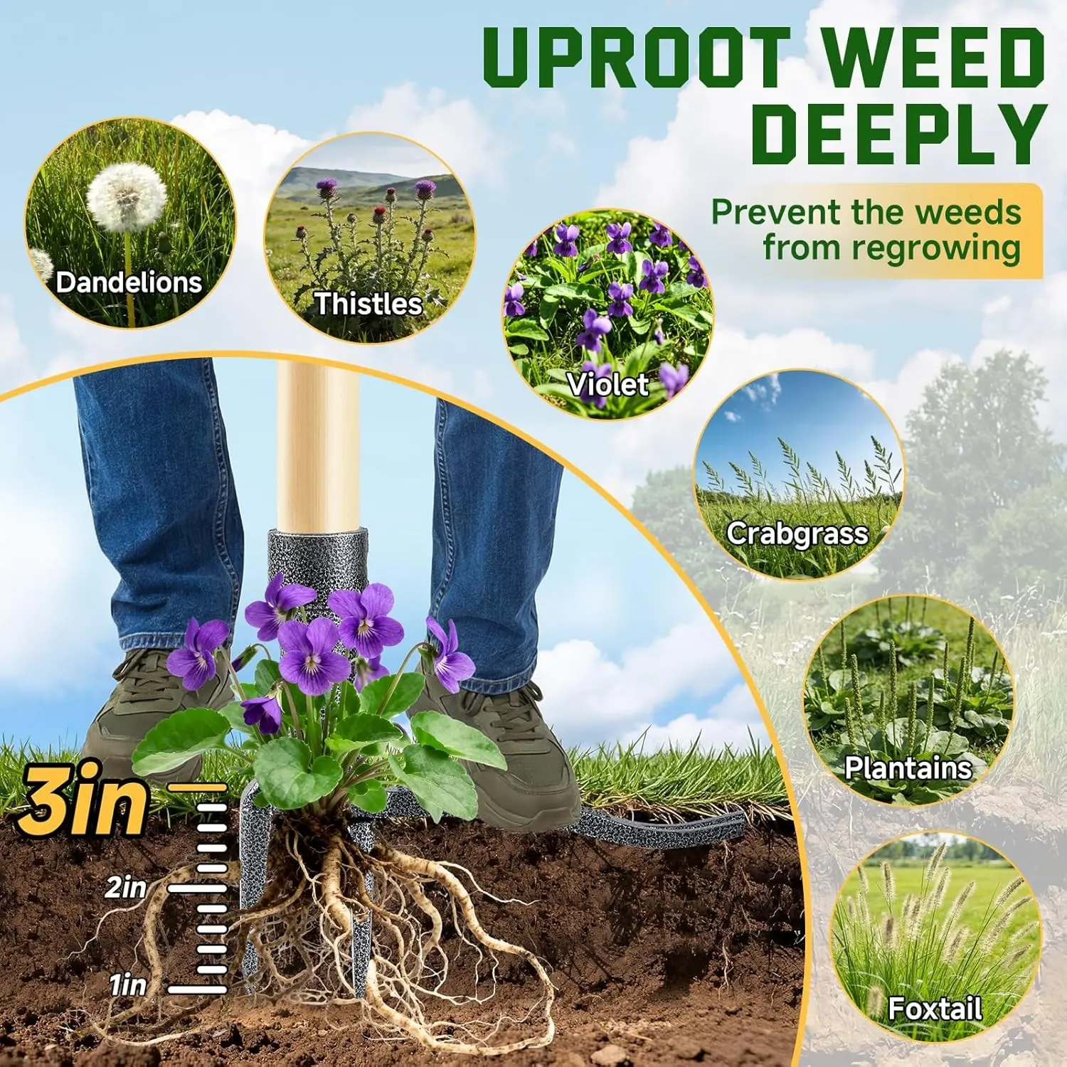 ·CHEMICAL-FREE WEED REMOVAL SOLUTION:Safely eliminate invasive weeds without harmful chemicals, protecting children, pets and the environment. This lifetime-warranty tool effectively removes dandelions, thistles, clover and burdock while preserving your garden's ecosystem.