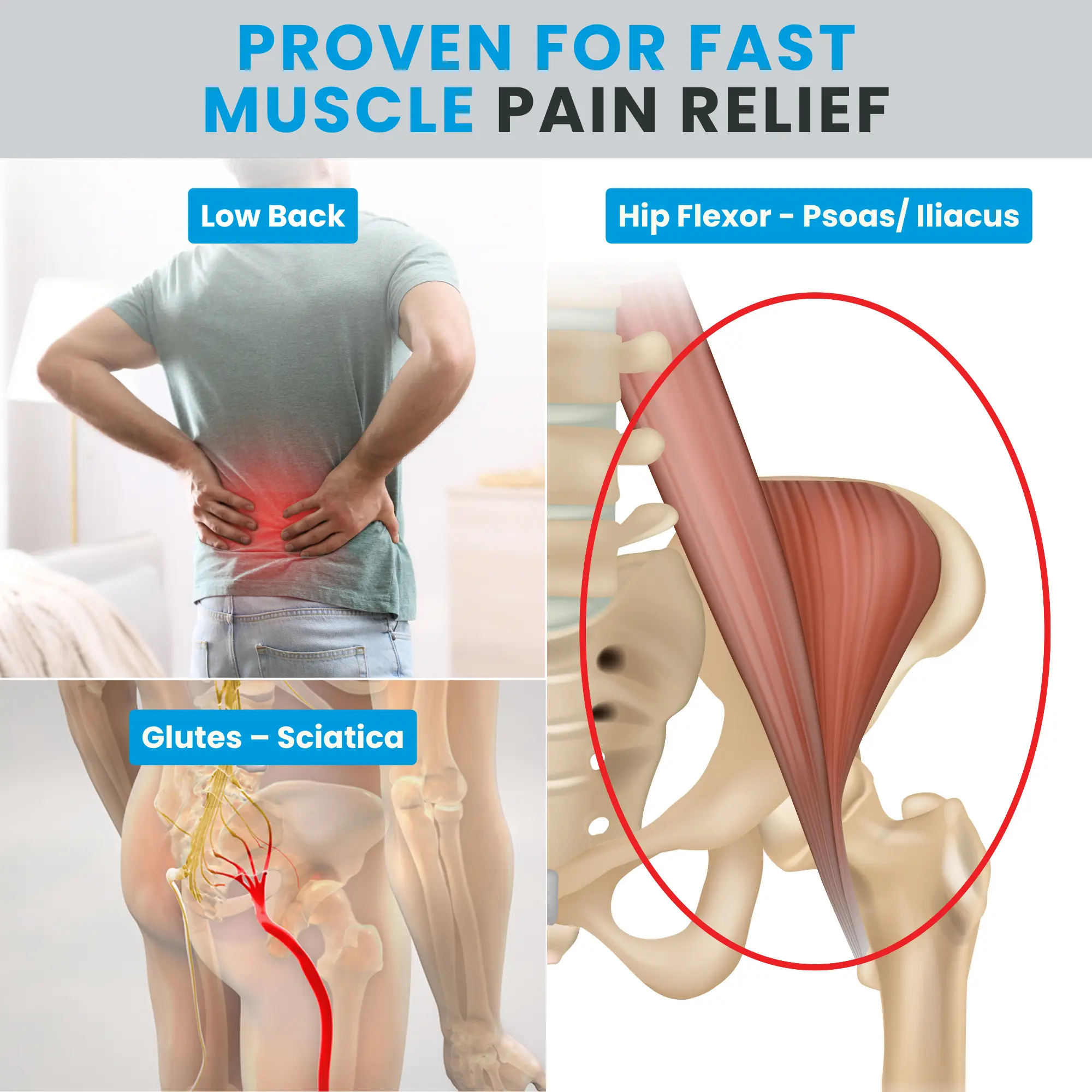 Professional-grade relief at home — psoas, QL, hip flexors, glutes, low back & neck. No appointment. No frustration. Just results.