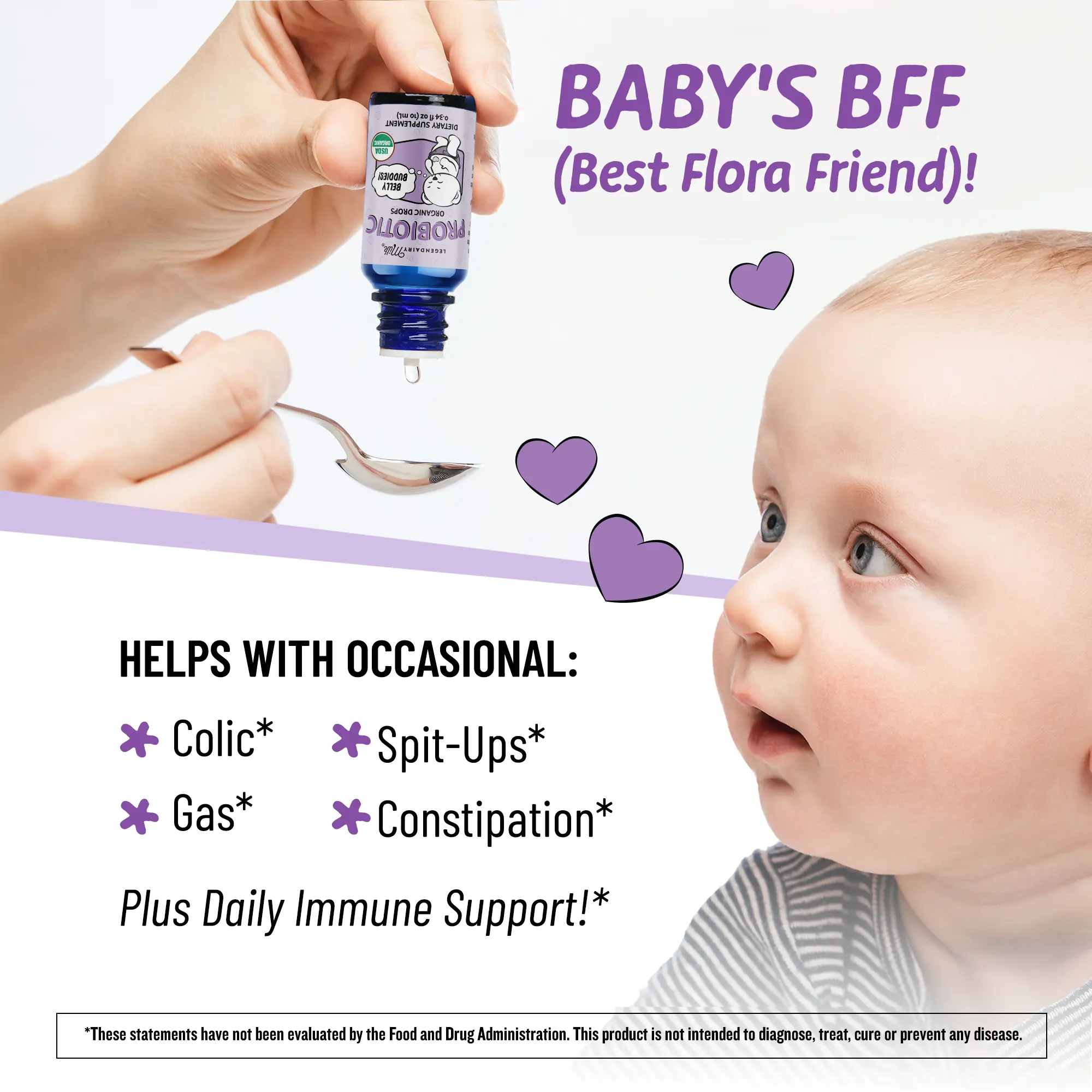·BABY’S BFF (BEST FLORA FRIEND):Formulated with 4 clinically studied probiotic strains to help ease colic, gas, and digestive discomfort.*