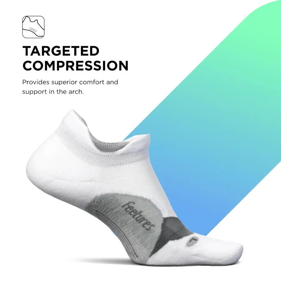 Feetures Elite socks are engineered with an enhanced fit and feel. If you're looking for the best performance sock on the planet, our Elite socks have it all. They feature Targeted Compression, which is zone-specific compression where you need it most for superior comfort and support. As a result, they have an anatomical design, meaning they conform to the left and right structures of the foot. This design provides a custom-like fit and reduced risk of blisters. Plus our Light Cushion is added for impact protection. These no-slip socks rest below the top of the shoe, which is our most popular and versatile silhouette. These no-show ankle socks are designed with a heel tab that provides comfort and blister protection from friction caused at the back of the shoe. Dedicated to helping people achieve their personal best and pursue an active lifestyle, Feetures designs high-quality socks that provide comfort and support recovery. Our promise to our customers is to deliver fit, feel, and durability to ensure they have the highest quality product to support them. Feetures socks deliver this promise with a custom-like fit, anatomical design, targeted compression, seamless toe, and more features specific to our different sock lines. We strive to innovate in our category and create products that are made to last to ensure we deliver value to our customers.