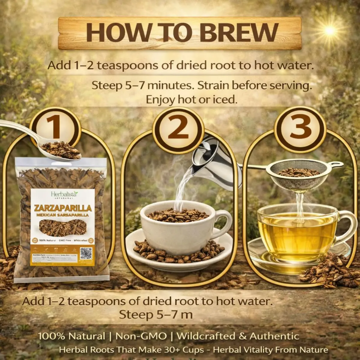 Herbalista - Mexican Zarzaparrilla Herbal Tea (Sarsaparilla Root) – Premium Loose Cut Botanical Infusion – 4 oz (113 g) Traditional Mexican Herb – 100% Natural, Vegan, Non-GMO, Caffeine-Free