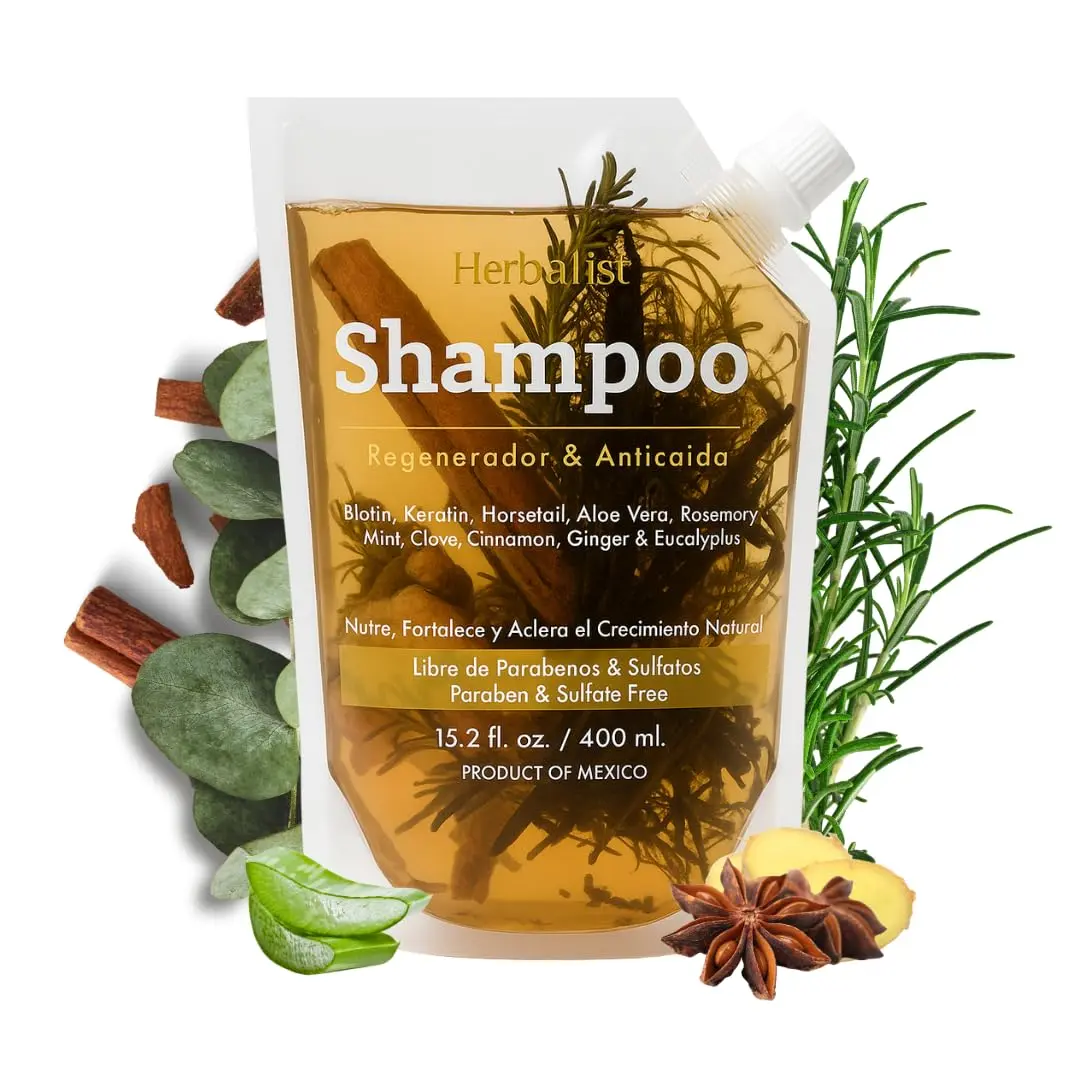 [Travel Size] New Herbalista Viral New Herbal Shampoo 400ml (15.2 fl oz) - With Real Pieces of Rosemary, Cinnamon, Anise, Clove, Aloe, Ginger, & Eucalyptus - Fortalece, Regenera, Acelera Crecimiento.