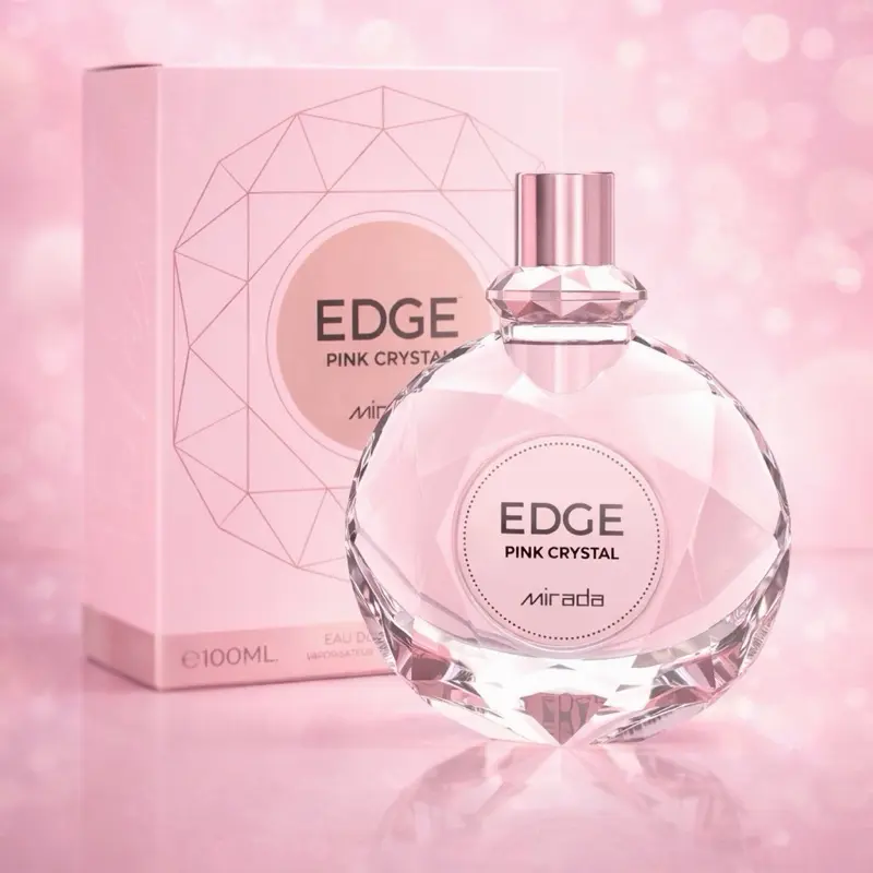 Edge Pink Crystal by Mirada blends juicy blood orange and raspberry with soft jasmine and warm amber, creating a bright, elegant, and long-lasting scent. Perfect for everyday wear or special occasions. 💖✨
