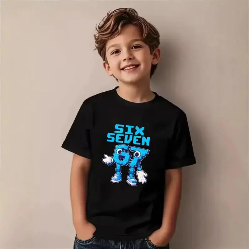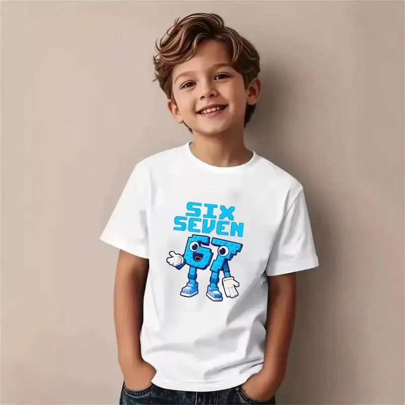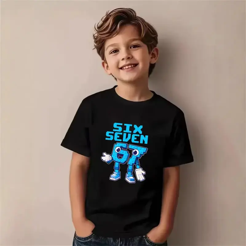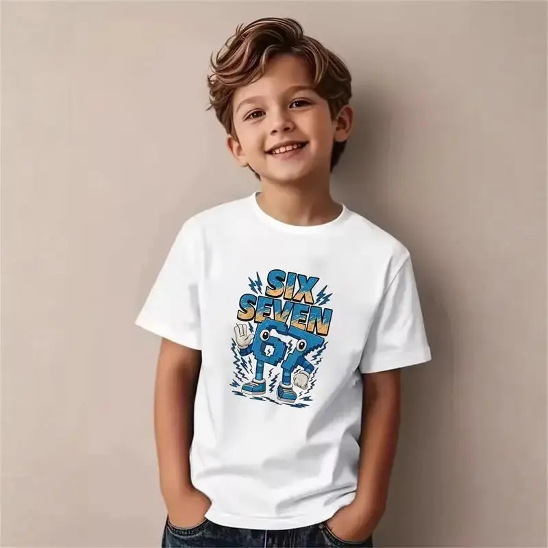 Teen Boy Mecha Robot T-Shirt with 67 Emoji Gesture Number Character Blue Lightning Fun Graphic Tee Gift