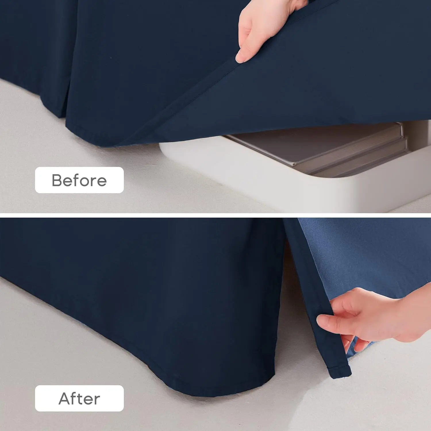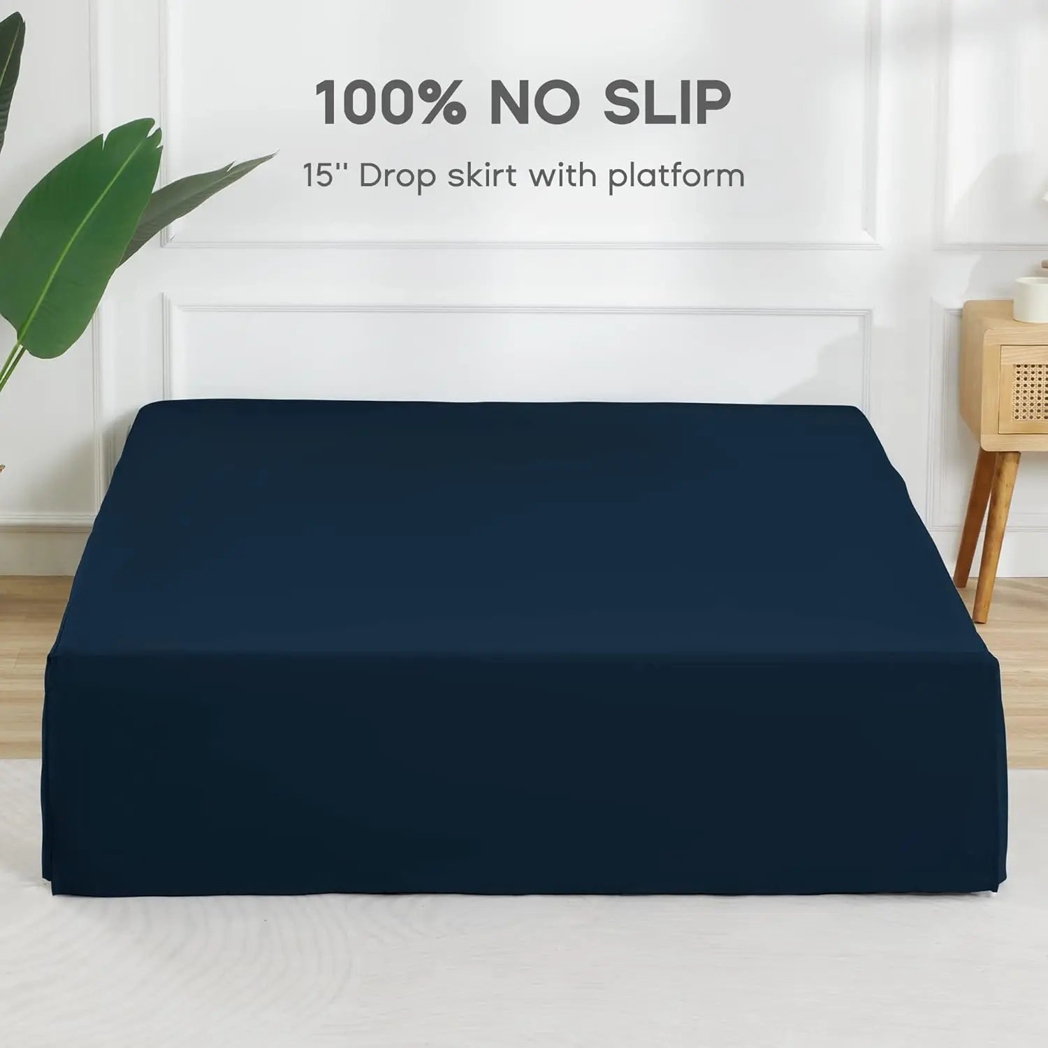 King Bed Skirt,15" Drop Pleated Dust Ruffle,Classic Tailored Brushed Microfiber Skirts Hotel Quality Shrinkage & Fade Resistant Navy Blue