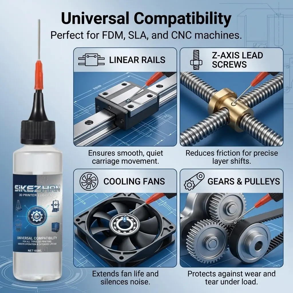 60ml Professional 3D Printer Maintenance Oil with Precision Needle Tip, Universal Mechanical Oil for Smooth Silent Operation, Anti-Wear Friction Reducer for Z-Axis Rails and Lead Screws SIKEZHAN