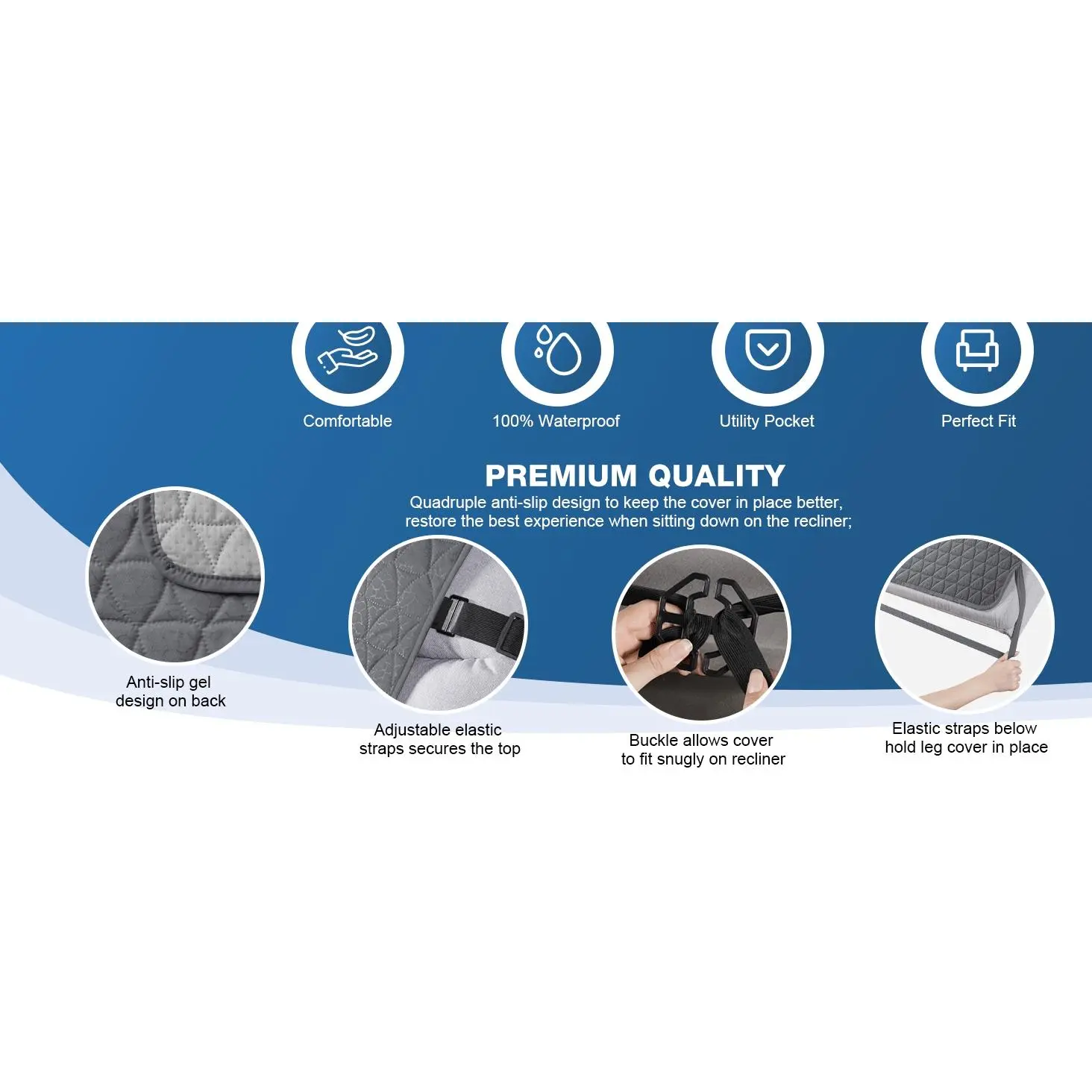 100% Waterproof Recliner Cover - Recliner Cover with Non-Slip Granule, Recliner Chair Covers with Elastic Band, Recliner Chair Covers for Reclining Chair(Dark Grey, Small-22'')