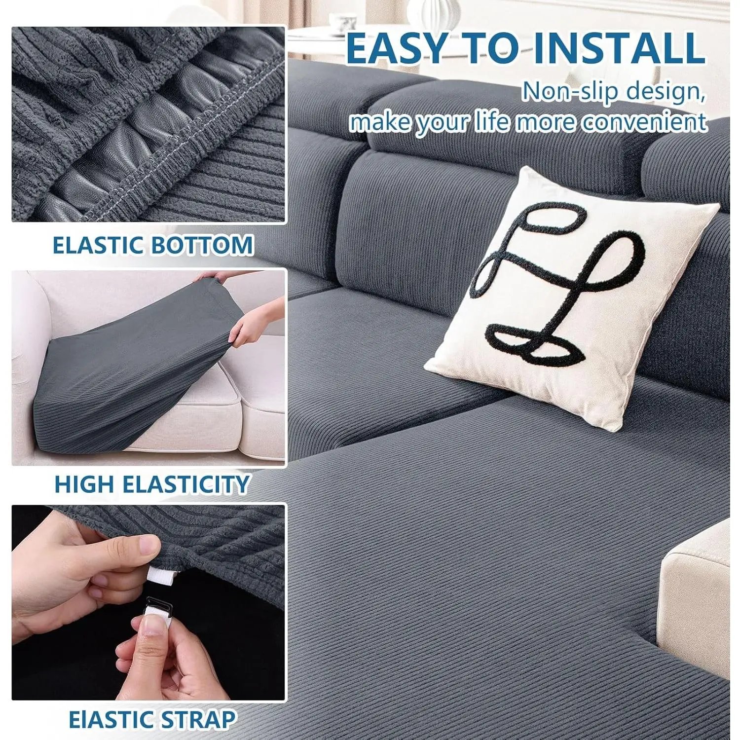 hyha Waterproof Sectional Couch Covers, Against Spills, Sofa Seat Slicovers Washable, Thick Elastic, L Shape Couch Cushion Covers for Dogs Pets (1 Piece for Chaise, Dark Grey)
