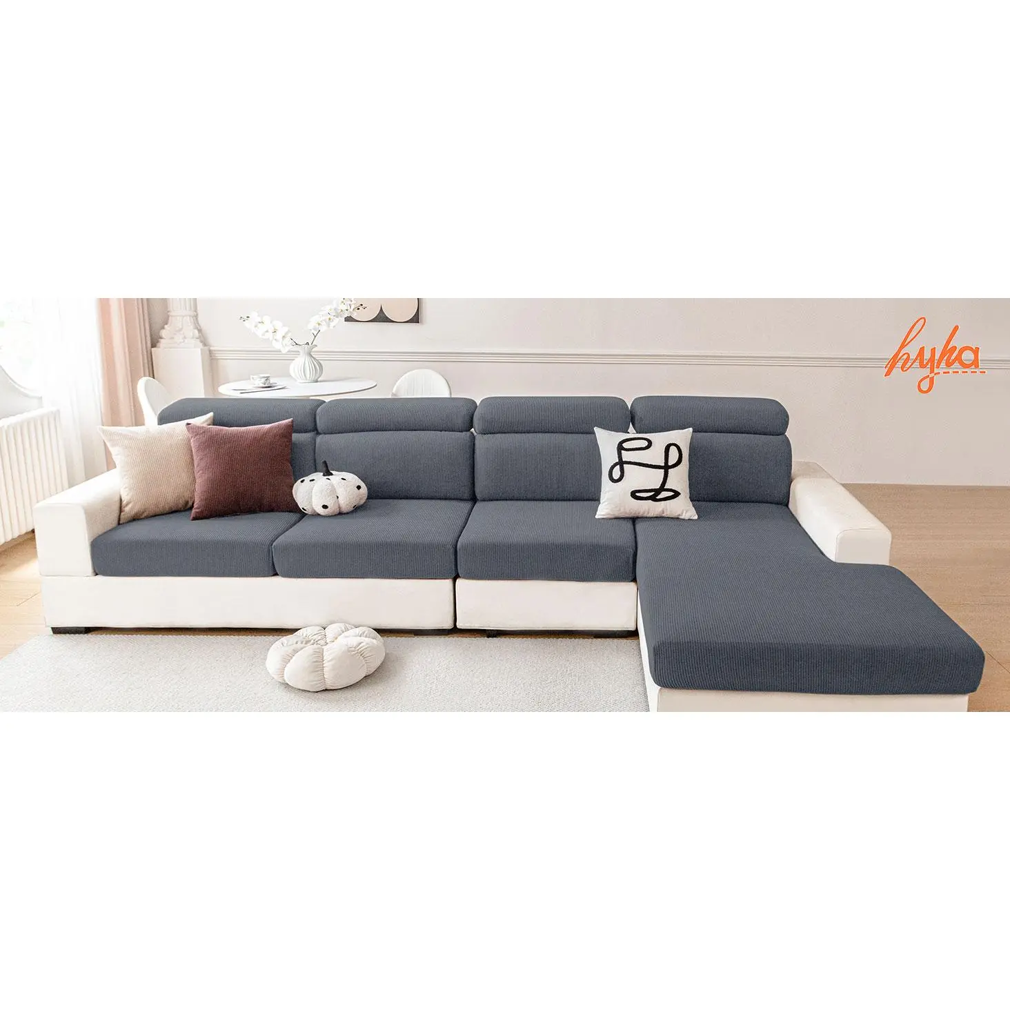 [Double Layer Waterproof] Our couch cushion cover has Waterproof coating of the back and waterproof treatment of the top fabric.Can effectively against water, and stains like pet hair, urine, food debris.[High Quality Fabric] The fabric is made of spandex polyester, which is stretchy, sturdy and breathable.Our couch covers for sofa is applied to various shaped furniture cushions, suitable for families with kids and pets for long-term use.[Stay in place] The high elasticity of the fabric makes the installation easier, and we designed an elastic band at the bottom of the cover, even when someone running, jumping, and sleeping on the sofa, our cushion covers for couches and sofas will stay in place.[Widely Usage] hyha cushion cover can not only be used as the sofa cushion cover, but also other shaped and style furniture covers such as L shaped chaise cushion cover, loveseat cushion cover, dinette cushion cover, ottoman cover.Just remember measuring before order.[Care Instruction] Hand wash or machine wash with cold water, and hang to dry. Do not bleach, iron and tumble dry, may cause the waterproof layer off. Pay attention to do not expose to the sun for too long, or the color of the couch seat covers may fade.