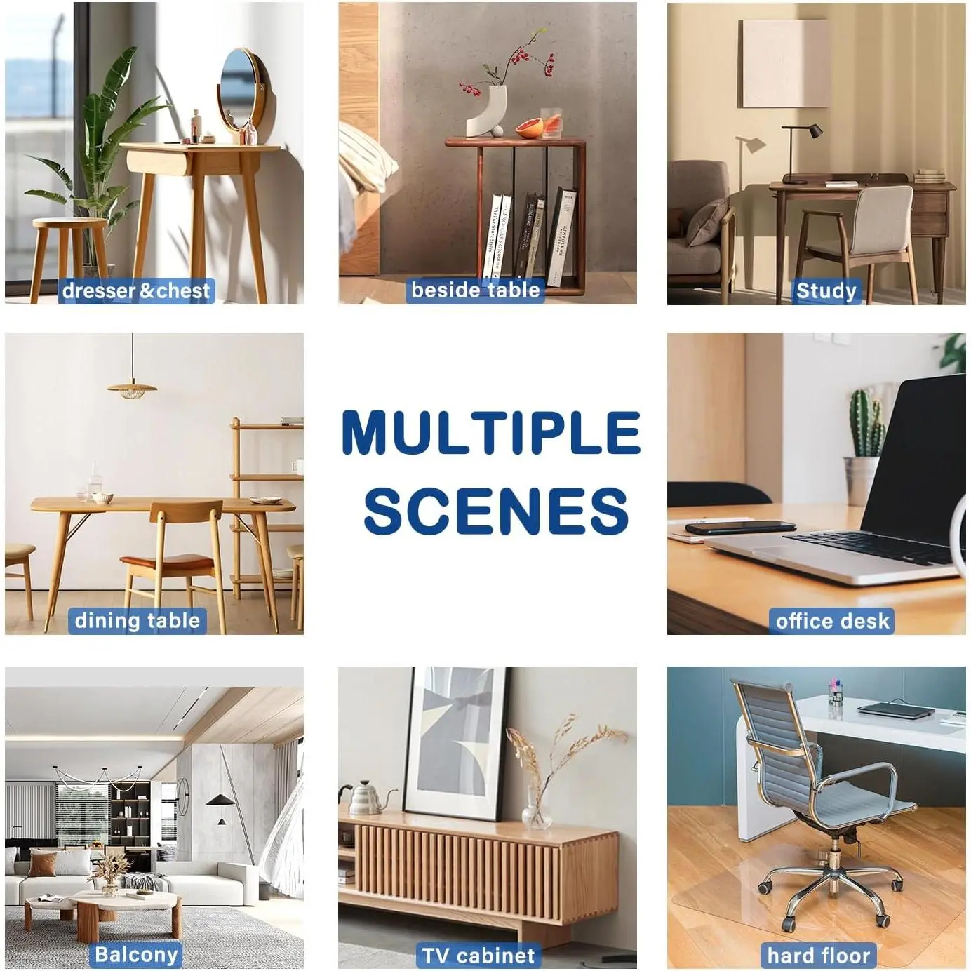 We offer many sizes and shapes of table mats for your dining table, office desk, coffee table, nightstand, TV stand, wine table, bar table, bistro or banquet table, work craft table, activity table, student study and writing desk, cocktail table, living room decorative table, high table.