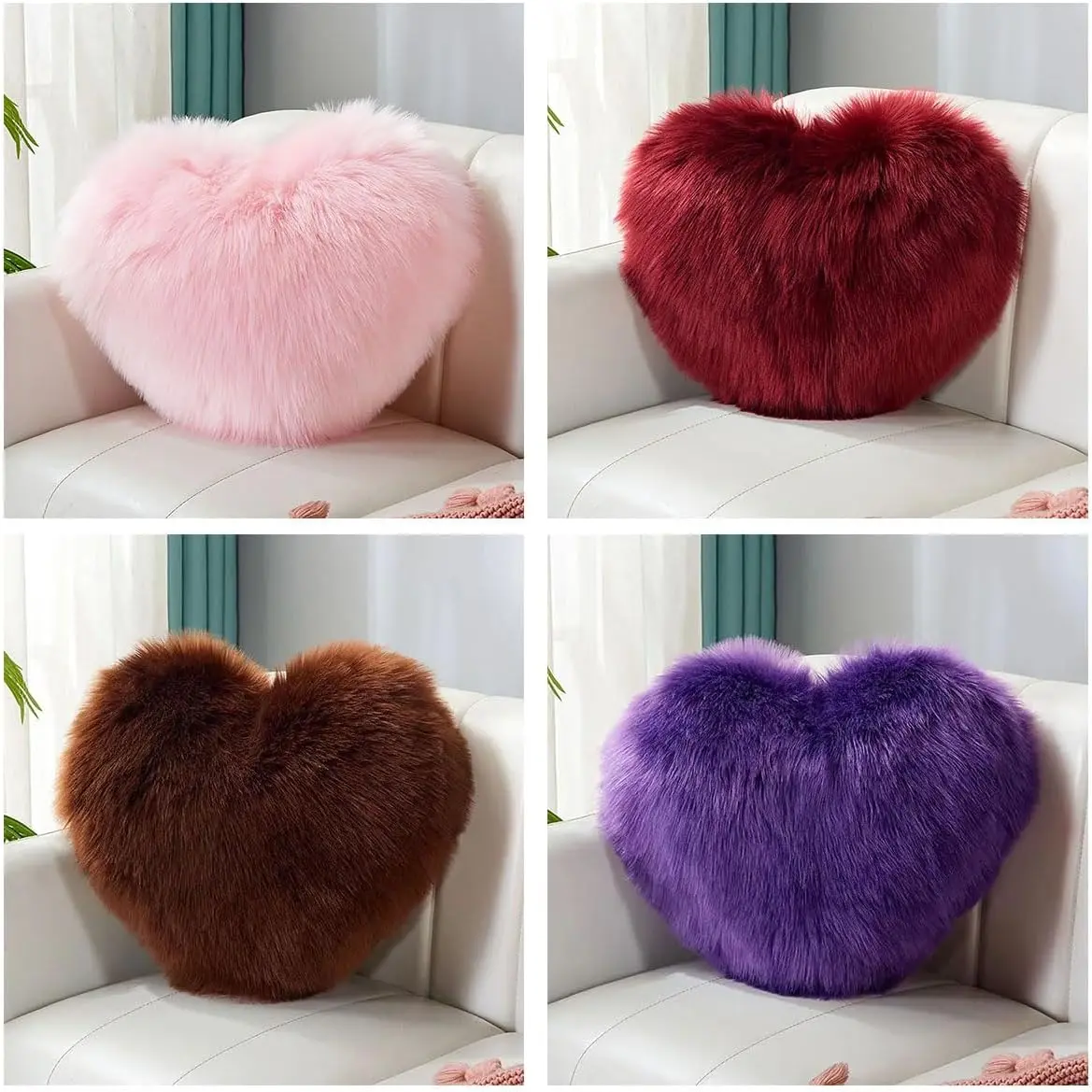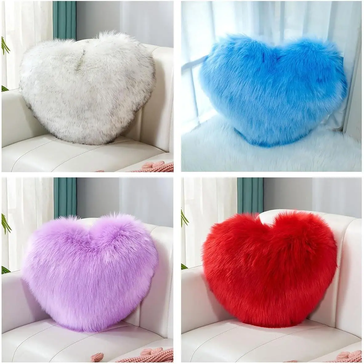 The heart-shaped pillow is made of high-quality fluffy PP cotton and long plush, which emits a soft and comfortable touch, creating a warm and comfortable feeling!You can snuggle up to it, lean against it, and even use it as a comfortable pillow to accompany you to sleep!The unique heart-shaped design will make you love it, especially the long plush!Use this loving pillow to express your most sincere love to your loved one, family, and friends!Widely used: You can place these heart-shaped cushions anywhere you like, they can decorate bedrooms, sofas, living rooms, bakeries, offices, cars, kitchens, etcKind reminder: During transportation, the volume will be compressed.After receiving the pillow, gently tap to restore its fluffy state!It has multiple colors and sizes to choose from.Simple care: Dry clean or machine wash separately in cold water using a laundry bag.Mild and low-temperature drying, not heated, not bleached, not ironed.