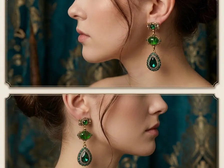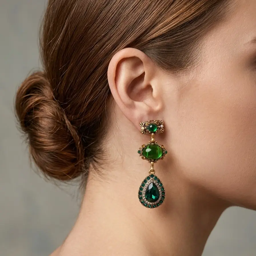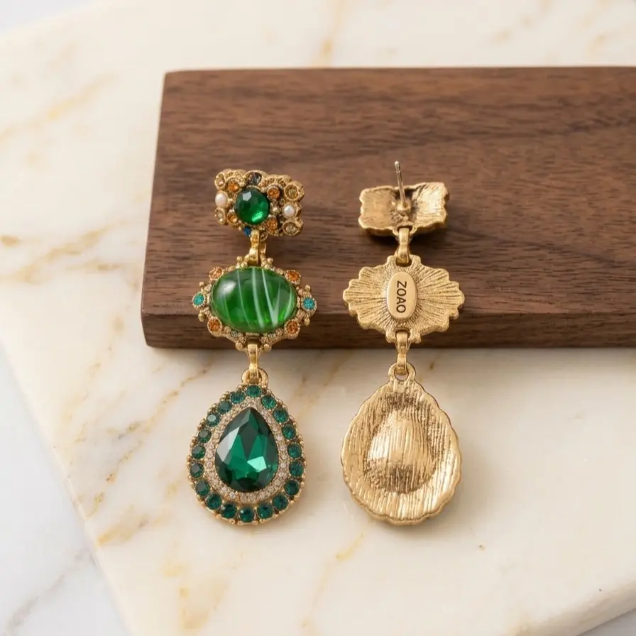 Product full name:Vintage green cloud pattern glass rhinestone earrings made of copper alloy
