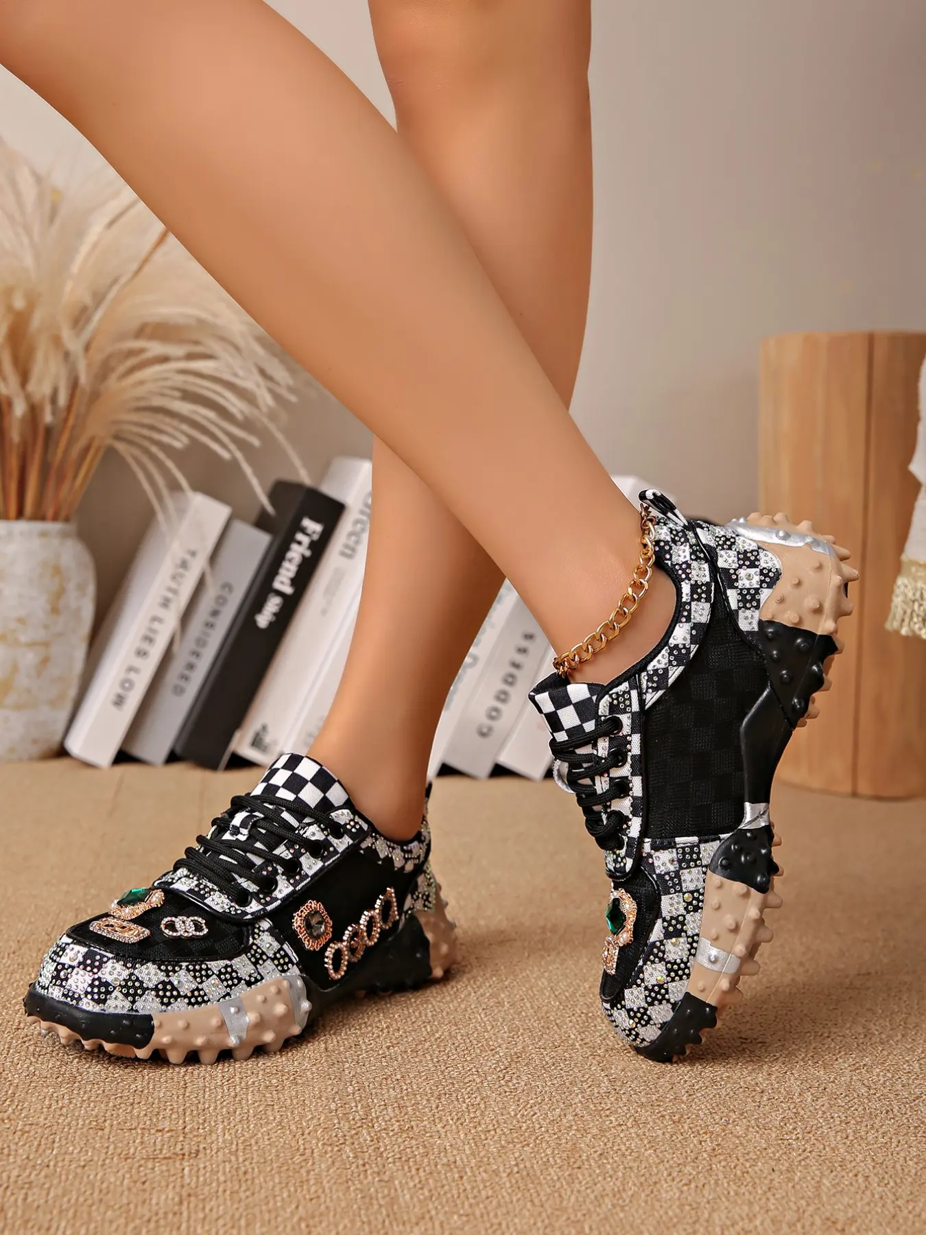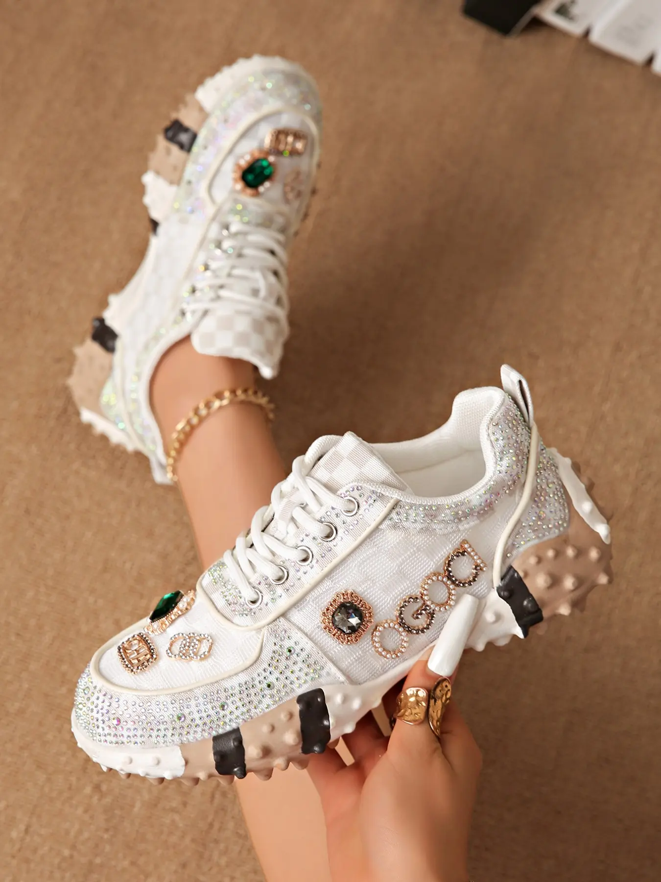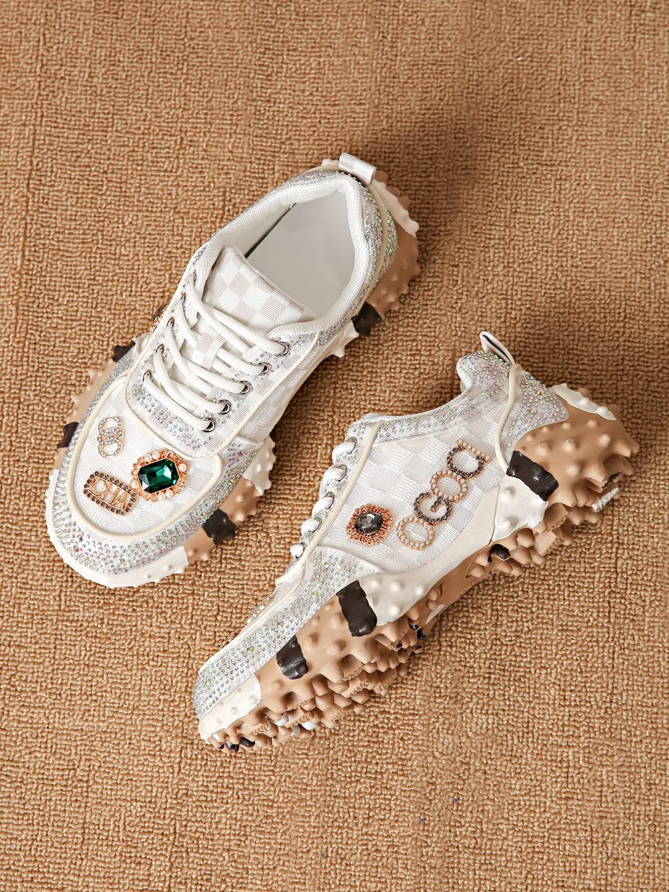 Women's Thick Sole Height Increasing Dad Shoes, Handmade Embellished Fashion Luxury Casual Women's Shoes, Unique Design Comfortable Sneakers