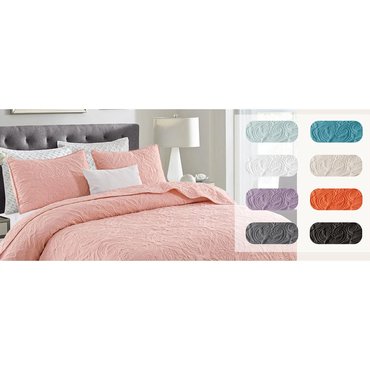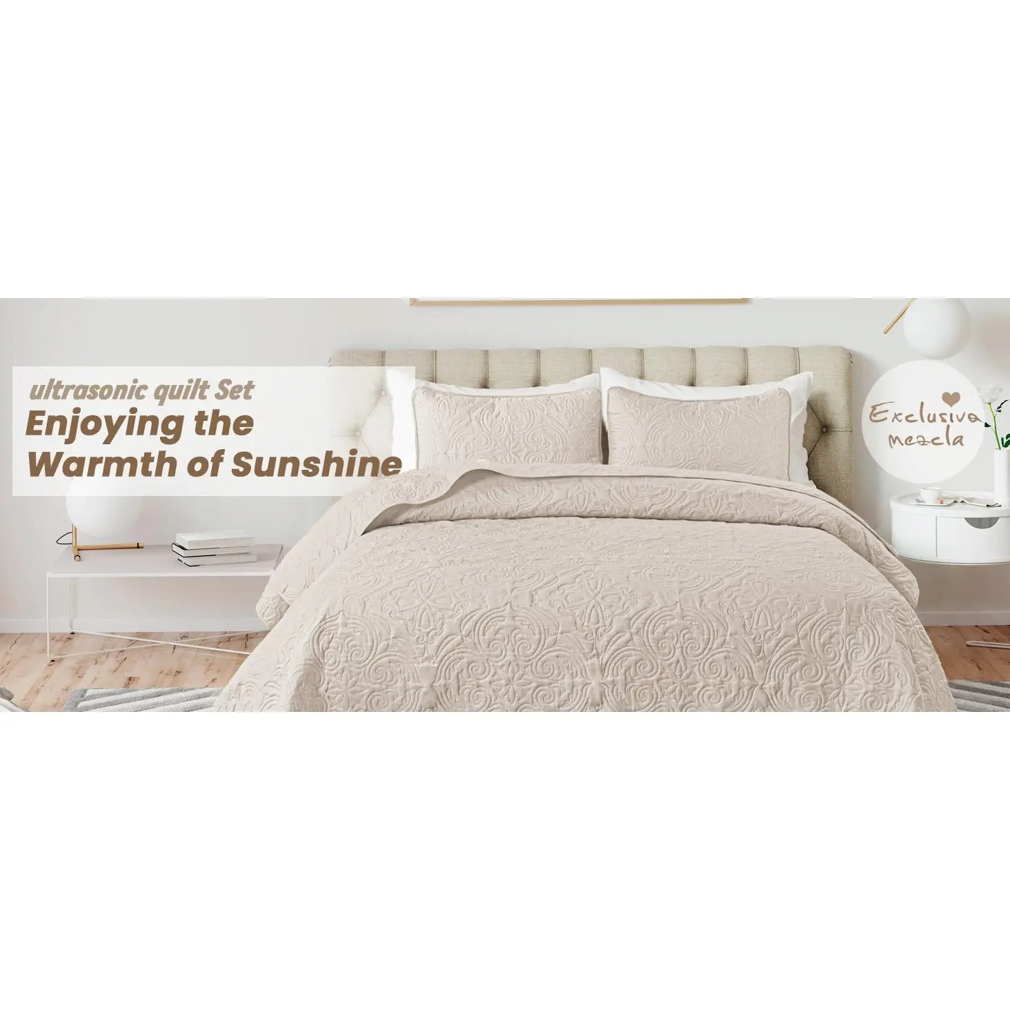 Package Includes: The full or queen quilt set comes with a quilts queen size 90 inch W x 96 inch L and two matching pillow shams 20 inch W x 26 inch L.If you want a bedspread or coverlet to cover all sides and end of your bed like the picture, you may purchase a larger size or needing a low bed.The pillow insert is not includedPremium Material: The queen size bedding set is made of brushed microfiber and filled with polyester which make the queen bed coverlet breathable, ultra-soft, skin-friendly and keeping you cozy and warm without overheating all night. Tips: The quilt set will be softer after washingVintage Pattern: Exquisite boho damask patterns are formed by ultrasonic high temperature embossing technology which makes the quilt more sturdy and lightweight, adding a touch of elegance to your bedroom decor, making it a timeless choice for all seasonsAll Season Use: The reversible quilt set is suitable for all seasons especially in summer or warm weather with a sheet or blanket underneath.Also, it can be as a bedspread or coverlet to provide warmth over or under your duvet or comforter in cold weatherEasy Care: The lightweight quilt bedding set is machine washable in cold water separatelygentle cycletumble dry lowdo not bleach and iron