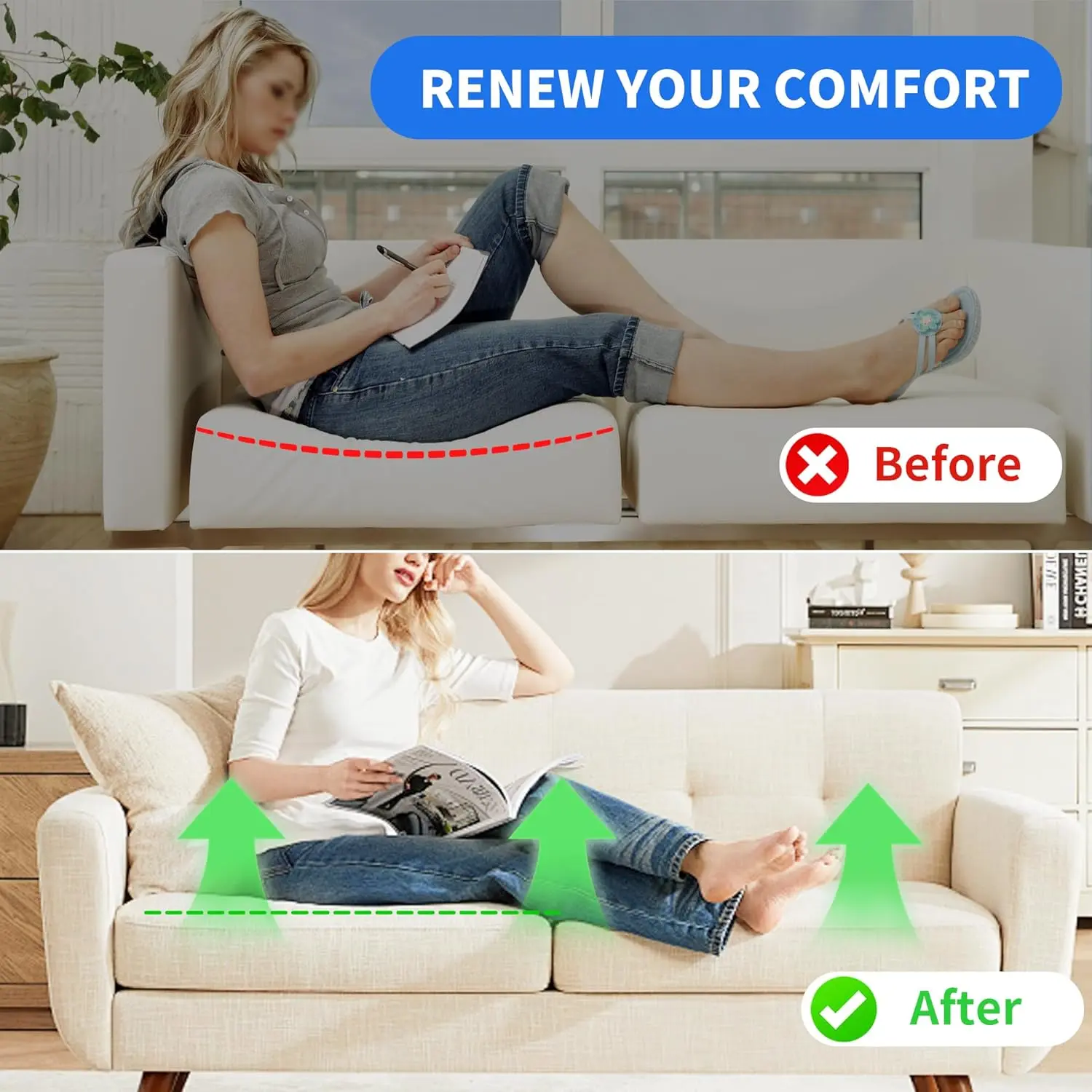 SURPRISING THICKENING: Couch cushion support for sagging seat is made of thickened 40D high-density foam, which is easy and fast to install, you just need to lift the sofa cushion and place cushion inserts couch underneath, and it can greatly improve you experience of sitting comfortably on the couch.INCREASED COMFORT IF COUCH: When your older couch needs some extra support or the cushions is sagging, placed sofa cushion support under the saggy sofa cushion there is no longer a dip and you no longer feel like you are sitting in a hole, it does help add some comfort back to the old furniture.PERFECT SUPPORT FOR OF YOU COUCH: If you have a couch that sits low which hard for anyone with knee problems to get down and up again.Couch cushion support can lift the cushion high enough to solve your low couch problem and it did make the seat more supportive, it beats buying a new couch.GIVE IT SOME TIME TO EXPAND: Couch supporter for under the cushions arrived in a small vacuum- sealed package, after taking it out, it will expand into a large, about 20 x20 x2in rectangles foam, it takes a while to fully expand but once it does it really does add support to your old sofa and adding firmness.WORKED WELL FOR MANY FURNITURE: If you have sagging cushions that need repair, we recommend that you try couch supports for sagging cushions to extend the life of your couch for bit longer.And sofa, chairs, lounge chairs, motor home and porch furniture or any uncomfortable seating can be used.