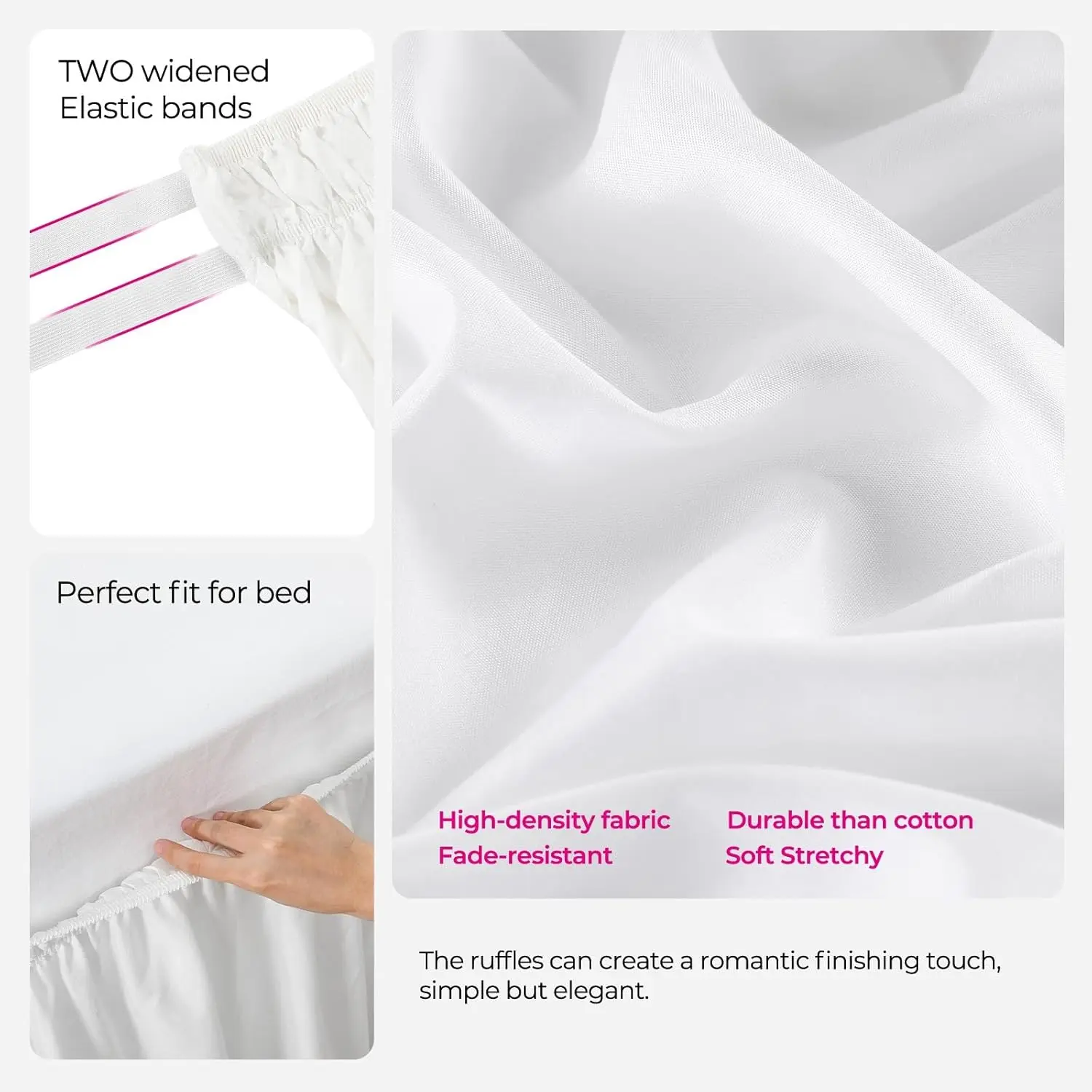 Ease of installation - If you want to adorn your bed with a bed skirt but don't want to bother lifting the mattress or don't want to take the time, rimela bed skirt is your answer.Decorate Your Bedroom - This bed skirt features an even, elegant and lovely ruffled design, will add a touch of charm and elegance to your bedroom while hiding imperfections under the bed matressFits Well - No top sheet section.The elasticity allows it to conform better to the mattress.You can also pair it with bed skirt pins for a more stable bed skirtEasy Home Care - Designed for bedrooms, hotels, guest rooms and more.Fabric is soft, smooth, durable, machine washable for cleaning and drying to remove wrinklesApplicable bed types - Rimela bed skirt can be used on mattresses, frames, platforms, box springs, or under-bed storage spaces (Not recommended for beds with footboards or posts)
