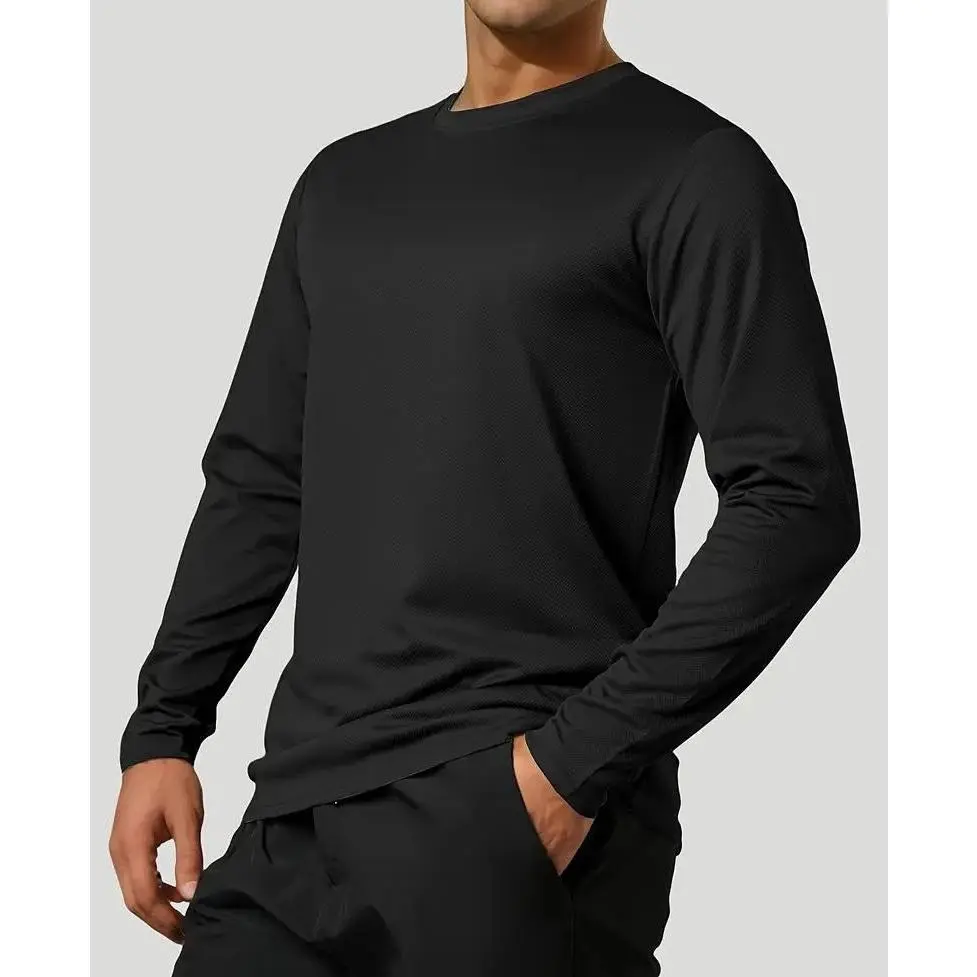 5 Piece Men's Quick Dry Long Sleeve Shirt - Moisturewicking, breathable polyester, crew neck, Outdoorfun,solid color casualsportswear, machine washable, moisture wicking garmentsCrew Neck T-Shirt | Stretchable Material Fathersdaygift