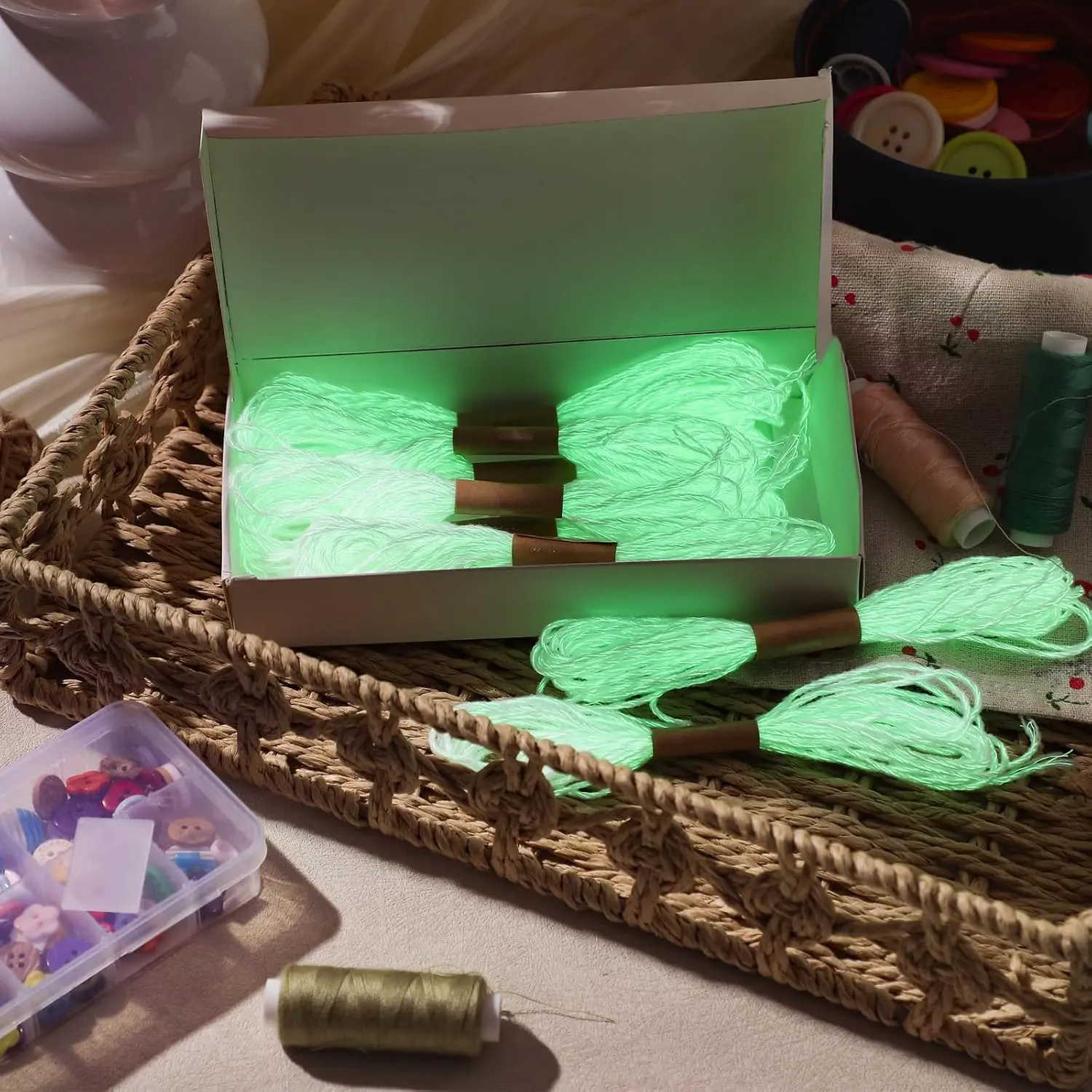 Glow in the Dark Craft Floss: includes 8 pieces of glow in the dark embroidery floss to support embroidery crochet friendship bracelets and other glow in the dark craftsThe luminous cross-stitch thread is capable of absorbing light from both natural and artificial sources for 1-2 minutes and continues to glow in the dark for 6-8 hours, adding a mysterious, magical touch to your embroidery projects, making it suitable for repeated use across multiple creative projectsIdeal Length: each spool of glow in the dark embroidery floss measures 400 cm/ 157.5 inches ( 4.37 yards), thoughtful for most embroidery, cross-stitch, and crochet projectsThe practical length ensures you have enough glow in the dark embroidery floss to complete detailed designs without frequent thread changesMilk Cotton Material: crafted from milk cotton, this glow in the dark embroidery thread is smooth, soft, and skin-friendlyIt retains color well, has a subtle luster, and won't cause irritation, safe for use on close, fitting clothing, accessories, or any project that touches the skinGlow in the Dark Yarn for Crochet Projects: the glow in the dark yarn for crochet offers good tension and flexibility for small crochet itemsIdeal for bracelets trims and lightweight accessories, this glow in the dark yarn adds visual interest without affecting stitch controlWide Applications: this glow in the dark embroidery floss is versatile, ideal for Halloween costumes, stage outfits, Christmas decorations, friendship bracelets, cross-stitch, and any craft needing a glow effectIt adds a special shine to both handmade gifts and decorative pieces