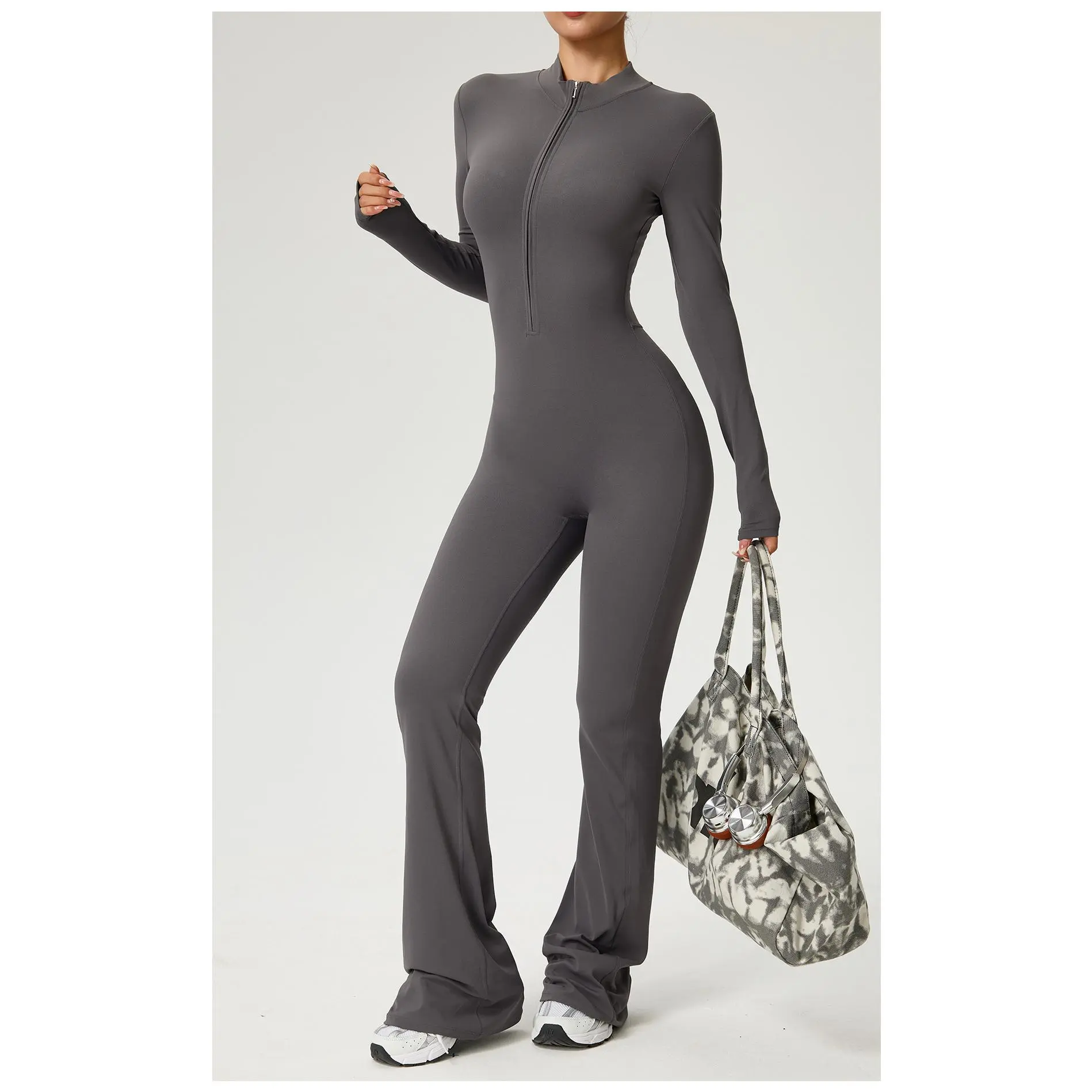 • Flared Bell Bottom Design & All-in-One Construction: Combines a sleek bodysuit silhouette with stylish flared legs for freedom of movement and a fashionable look.