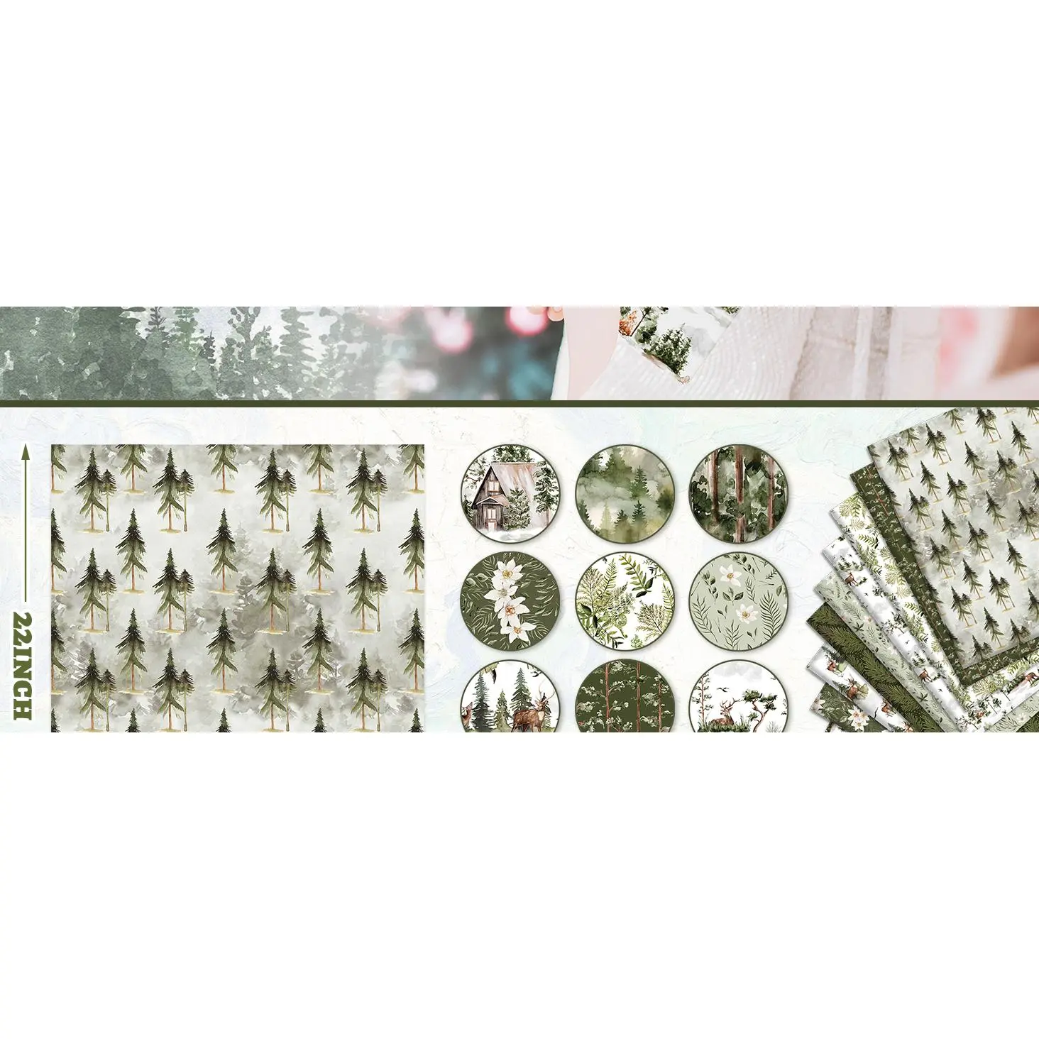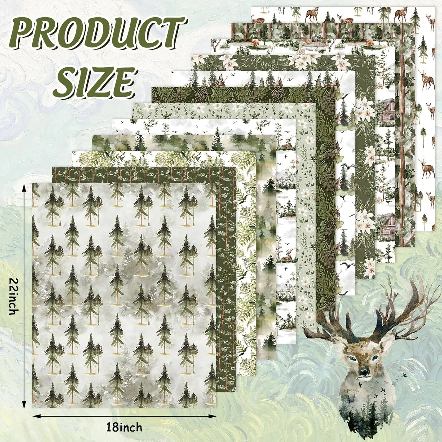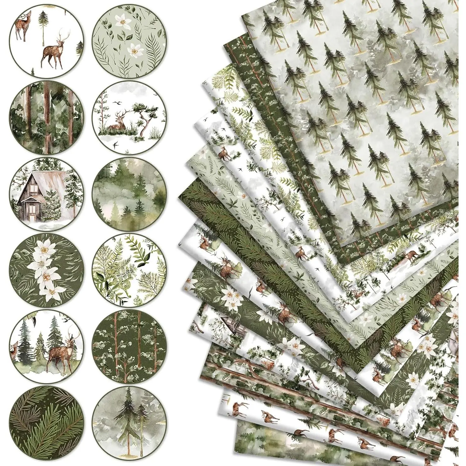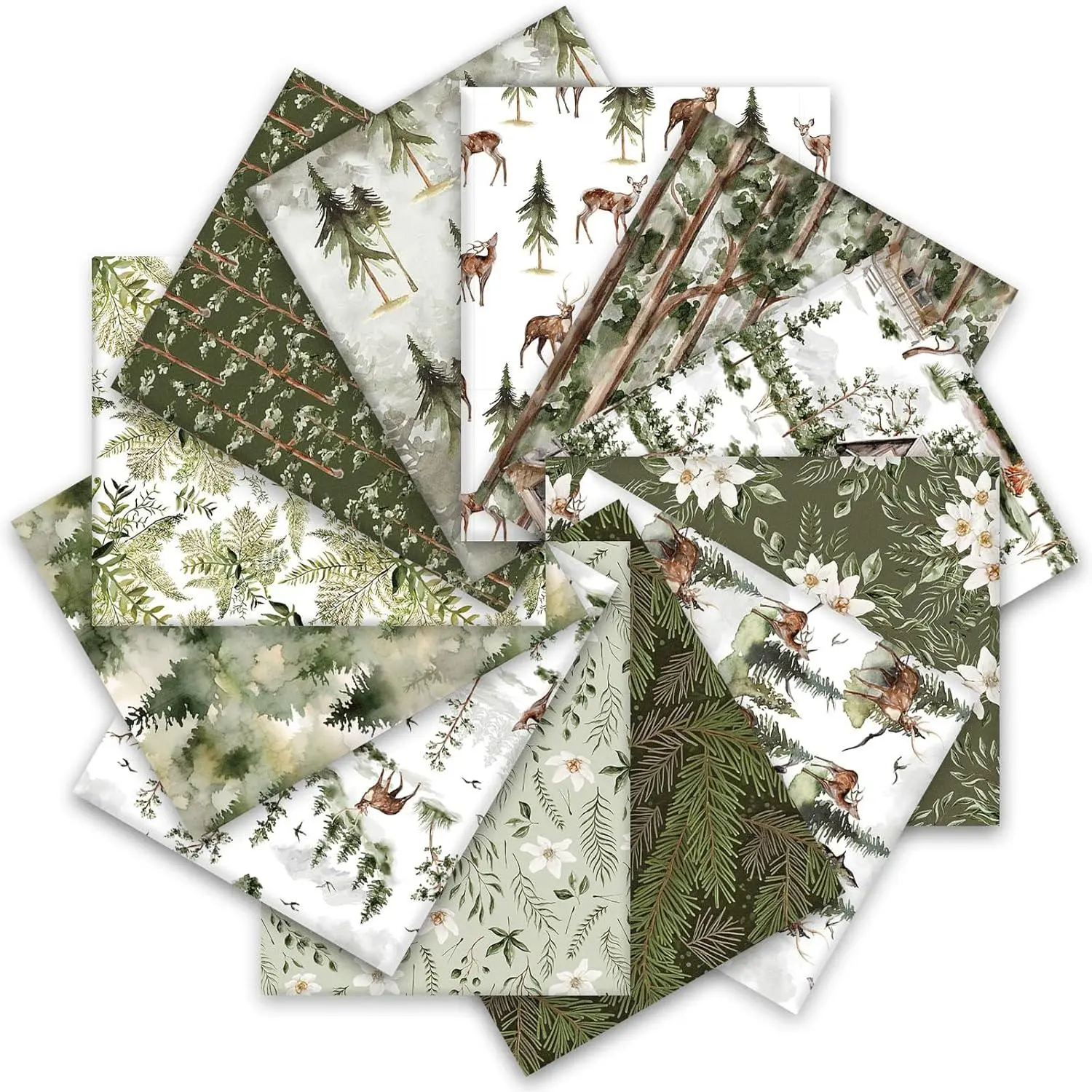 The Amount of Package – Includes 12 pieces of cotton fabric bundles, each has a different design, various designs and sufficient quantity can perfectly meet your holiday and daily needs.Xmas Forest Patterns – Our cotton fabric bundles take delicate watercolor style, printed with forest elements, Christmas tree, reindeer, flowers, leaves, etc., show a beautiful scene, perfect for holiday and daily use.Premium Material – Our fat quarters are all made of premium cotton, it feels comfortable, odorless, suitable for cutting and sewing, not easy to fade after washing, and can be used for a long time.Easy to Cut – These cotton fabric bundles measures 18 x 22inch, proper size for you to apply, they are soft enough and you can arbitrarily cut these cotton fabric bundles to the size you need.Wide Range of Use – You can stimulate your imagination and creativity, use these fat quarters to DIY many practical sewing crafts, such as pendants, wallets, dolls, gift wrapping cloth, etc., or it can also be given as a lovely gift to friends who love sewing.
