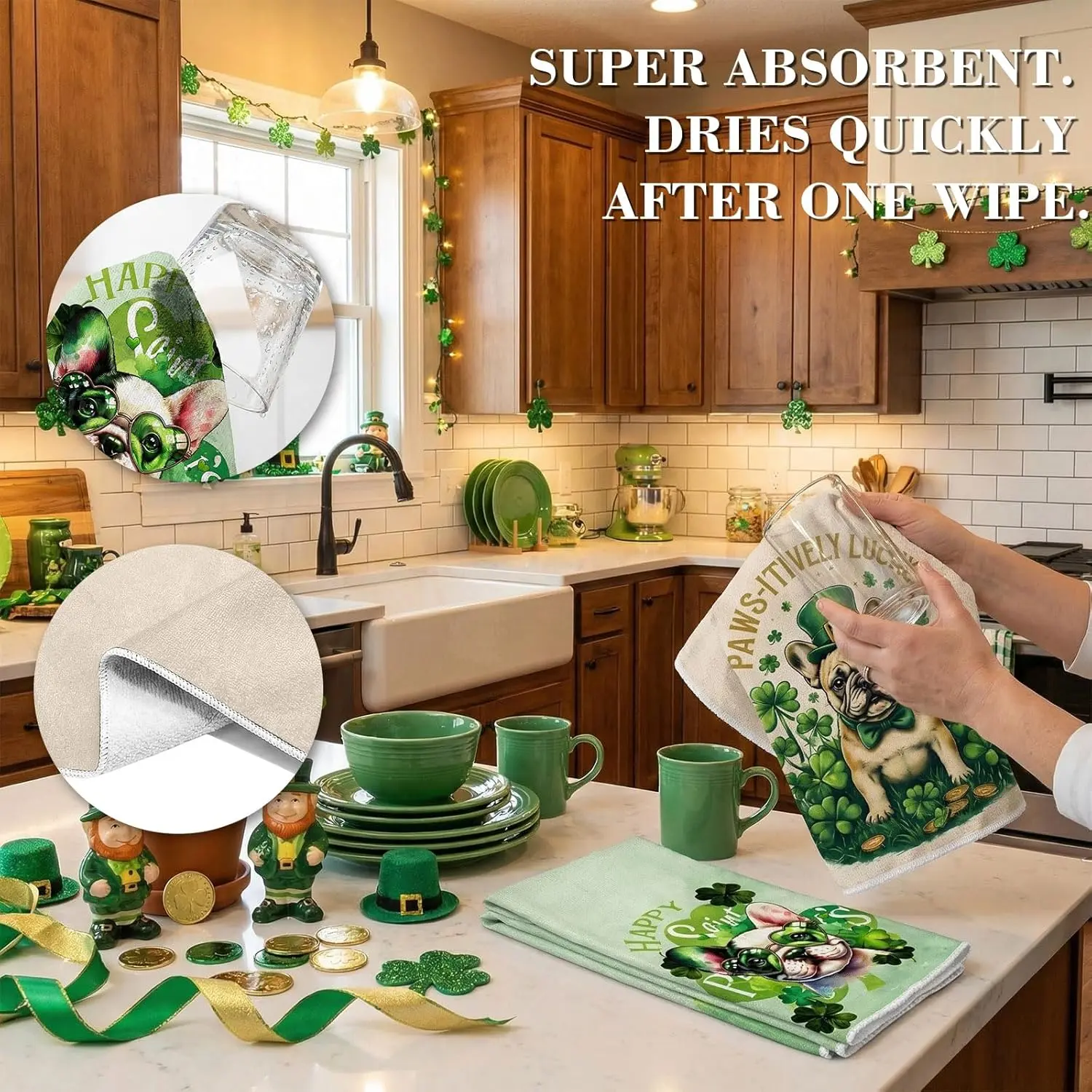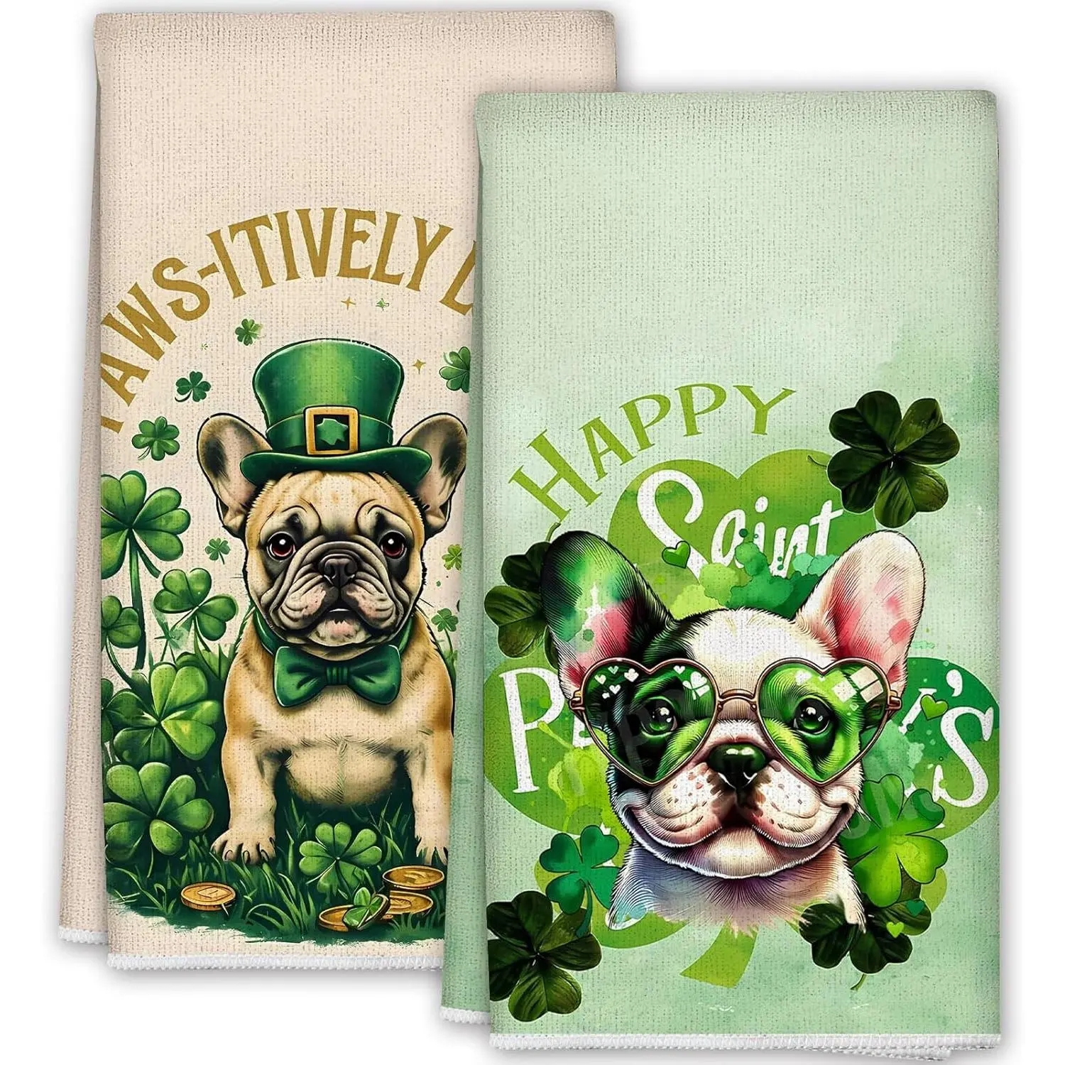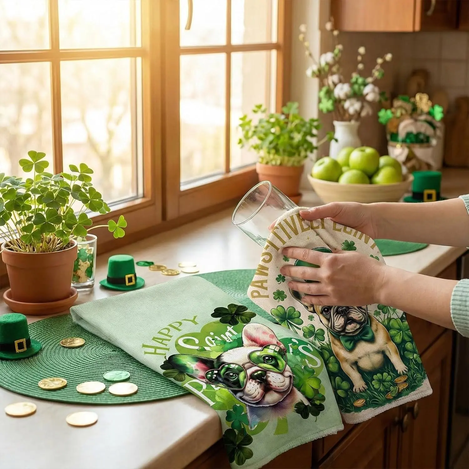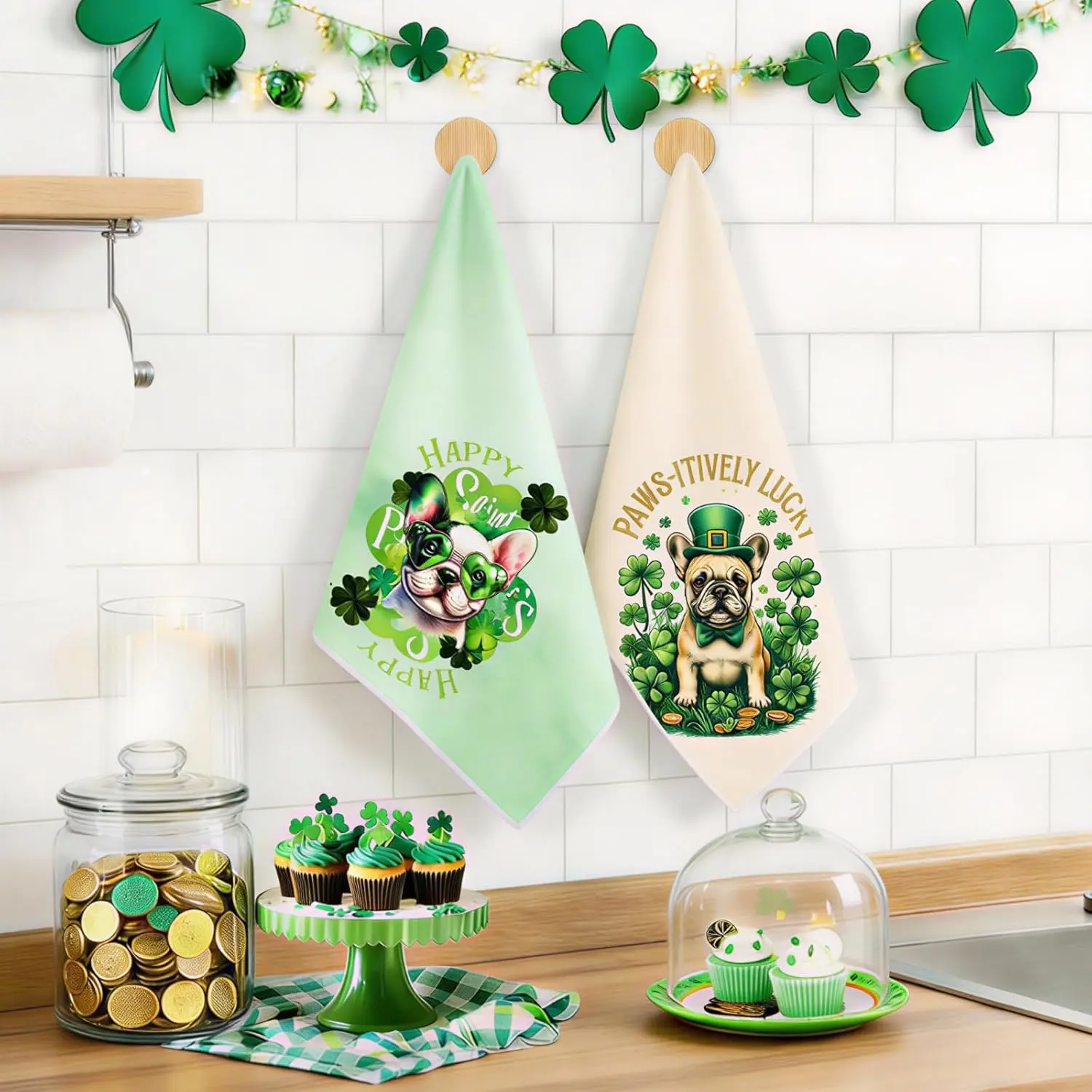 2Pack St Patrick's Day Towels, Absorbent Microfiber, St. Patrick's Day Gifts Decorations for Home, 18 x 24 Inches (Dog)
