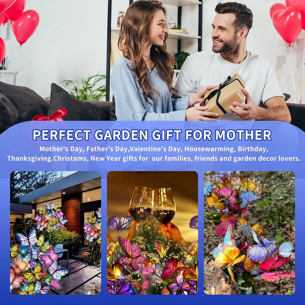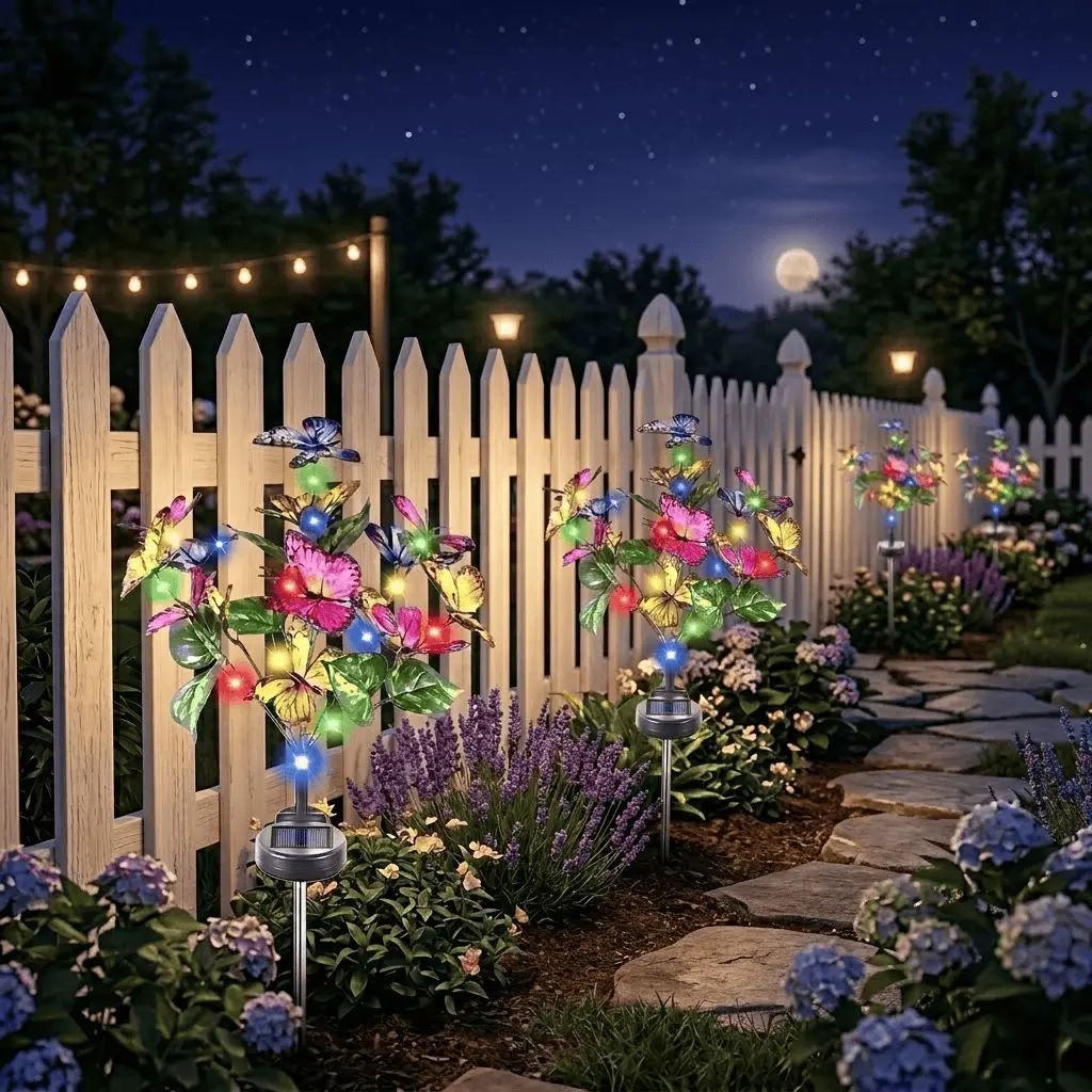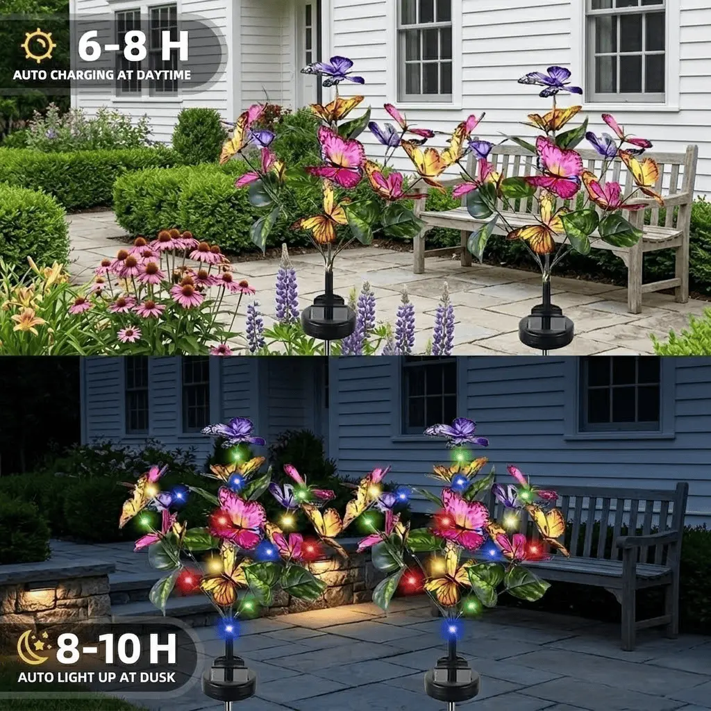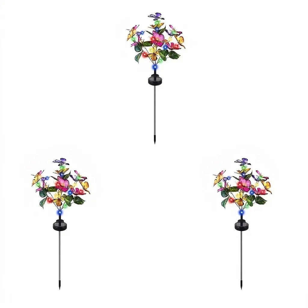 Outdoor Solar Garden Decorative Lights (3–6 Pack) — Featuring 40 Colorful Butterfly-Shaped LED Bulbs. Waterproof Design; Ideal for Courtyards, Patios, Pathways, Porches, and Lawns. A Perfect Mother's Day Gift.