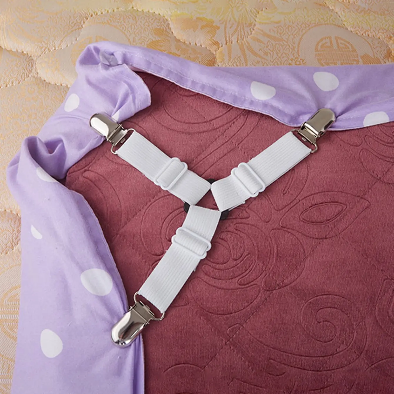 4-Pack Adjustable Elastic Band Clips, Triangle Bed Sheet Holders, Tablecloth Curtain Metal Clamps, Sofa Cushion Non-Slip Clips