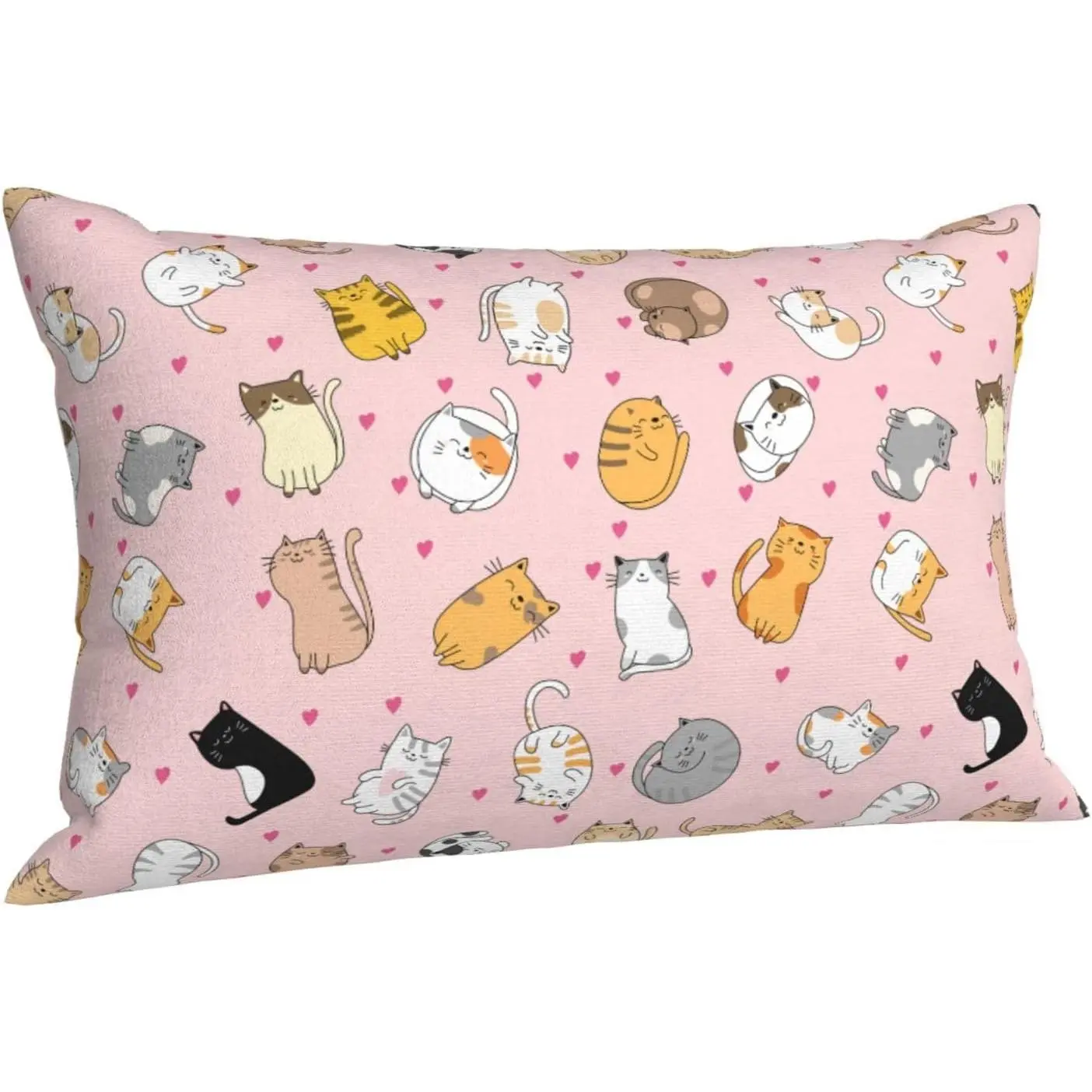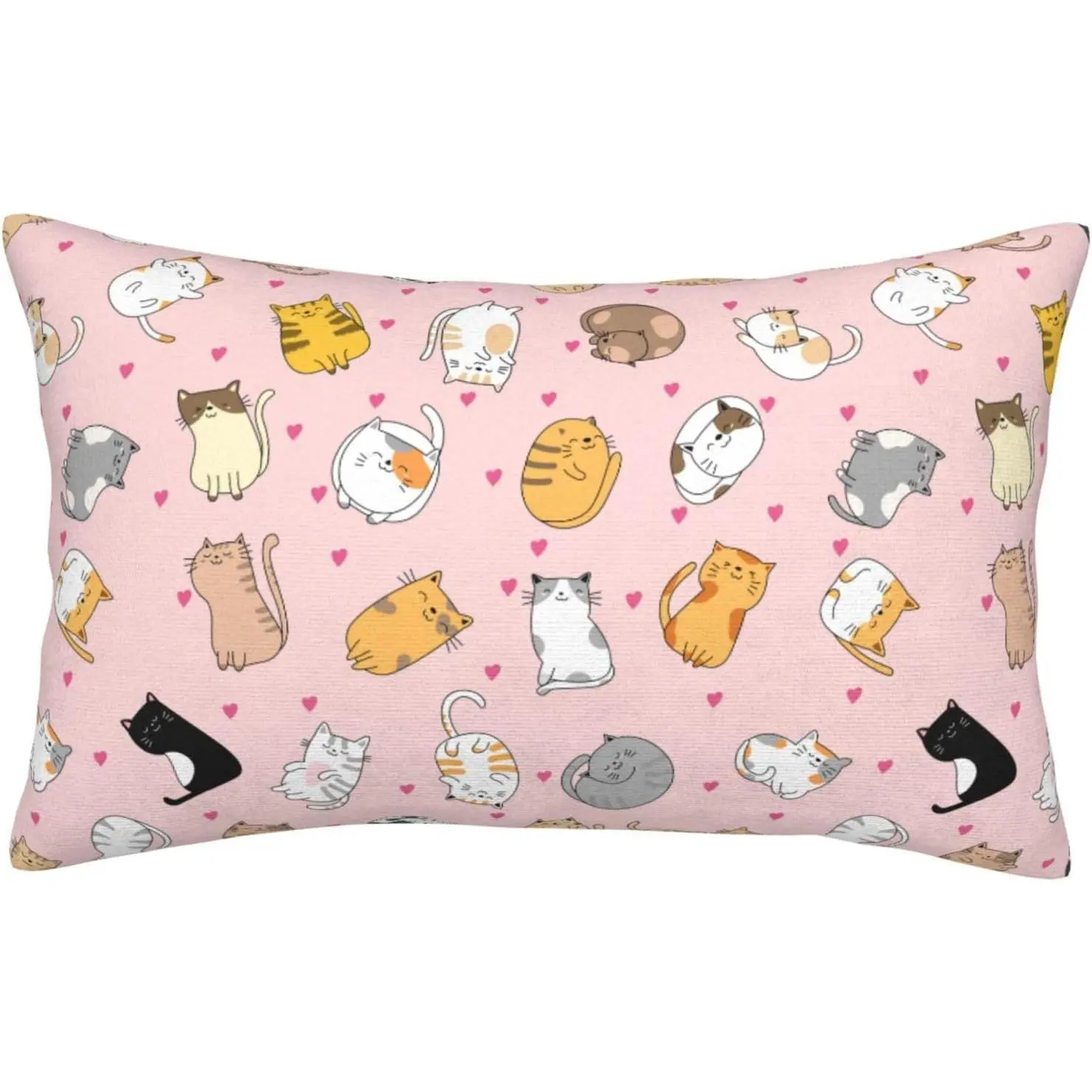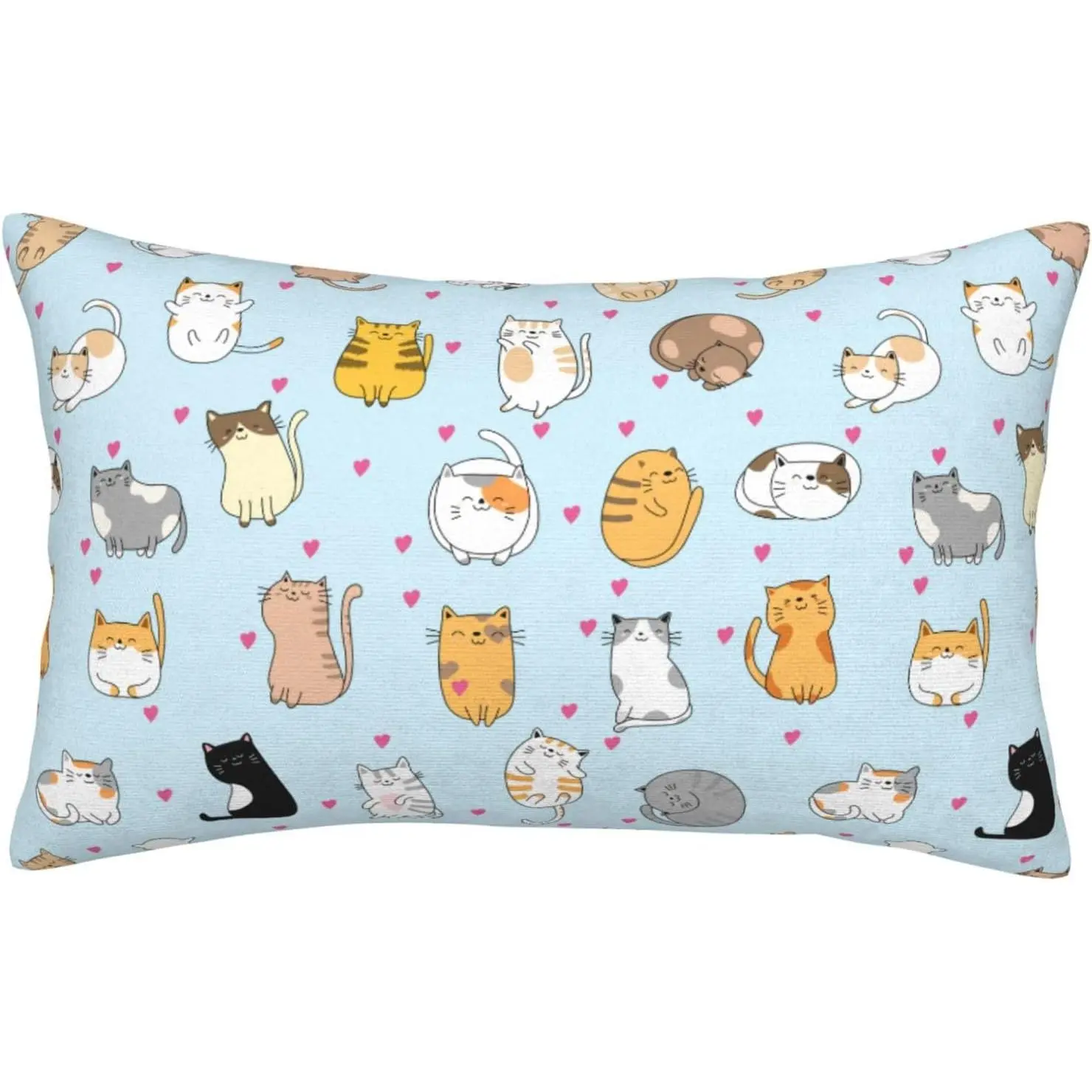 Cute Cat Pillow Cover 16"x24" Inch Bed Pillow Pillowcases with Hidden Zipper Lumbar Pillow Case Cushion Queen Size Standard Soft Breathable Rectangular Pillow Covers,for Sofa Couch Bed