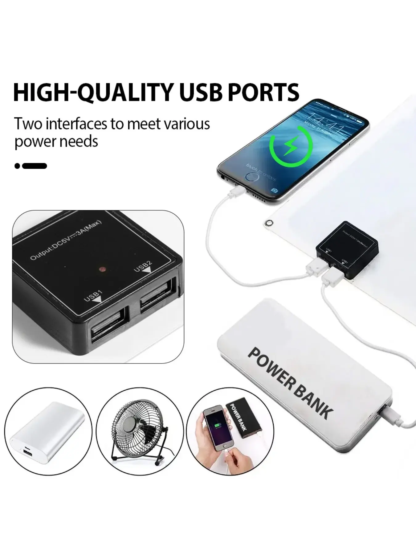 10W Solar Charger, IP65 Waterproof, Foldable with Dual USB Outputs (5V/2A Max) for iPhone, iPad, Samsung, and more. Ideal for outdoor use.