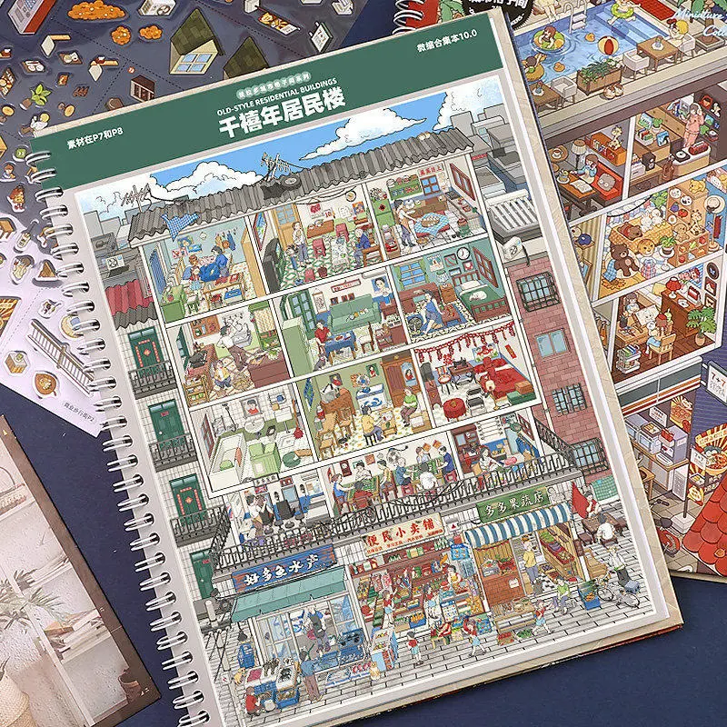 TiraDo Miniature Scene Collection Planner Stickers 3D Office Cubicle Diorama Stickers Cartoon Home Decoration for Bullet Journal Journaling Crafts Supplies