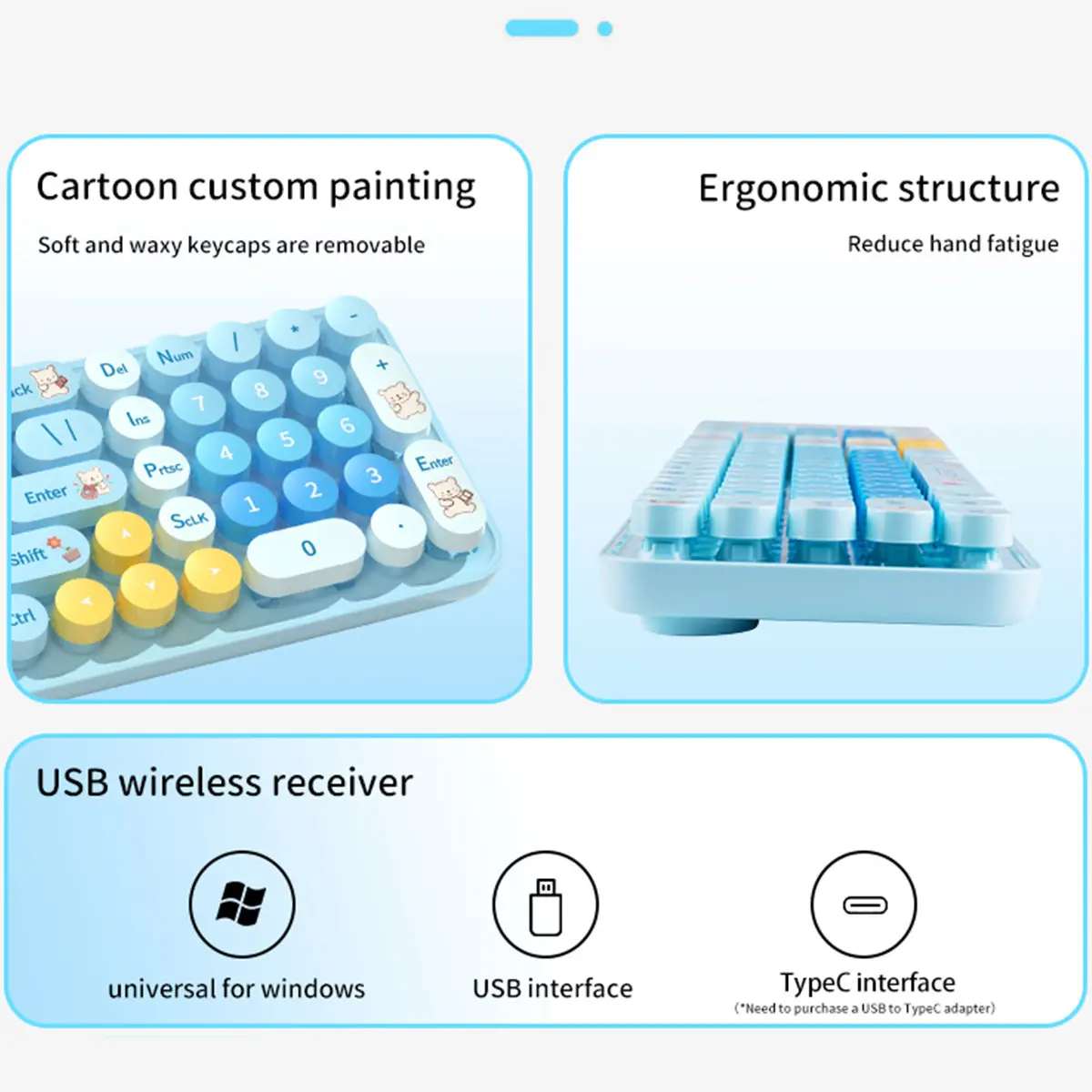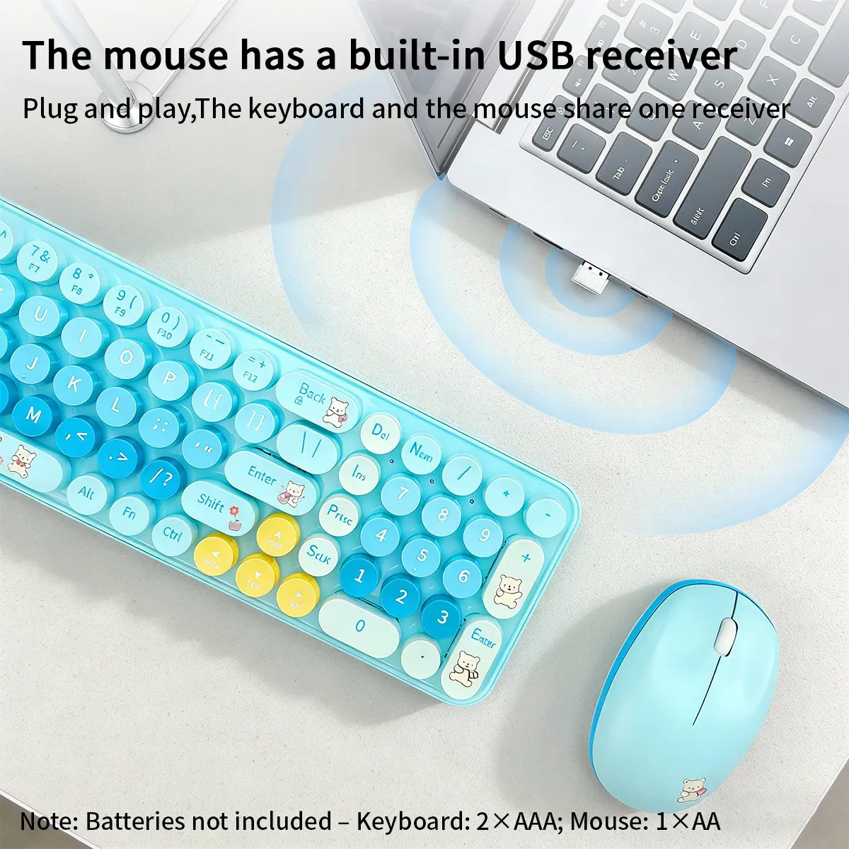 5. MOFii 1 Set Blue Bear Wireless Keyboard and Mouse Combo, Aesthetic Desk Essential for Students, 2.4G Plug and Play, Compatible with Laptop & Desktop, US Qwerty (Battery Not Included)