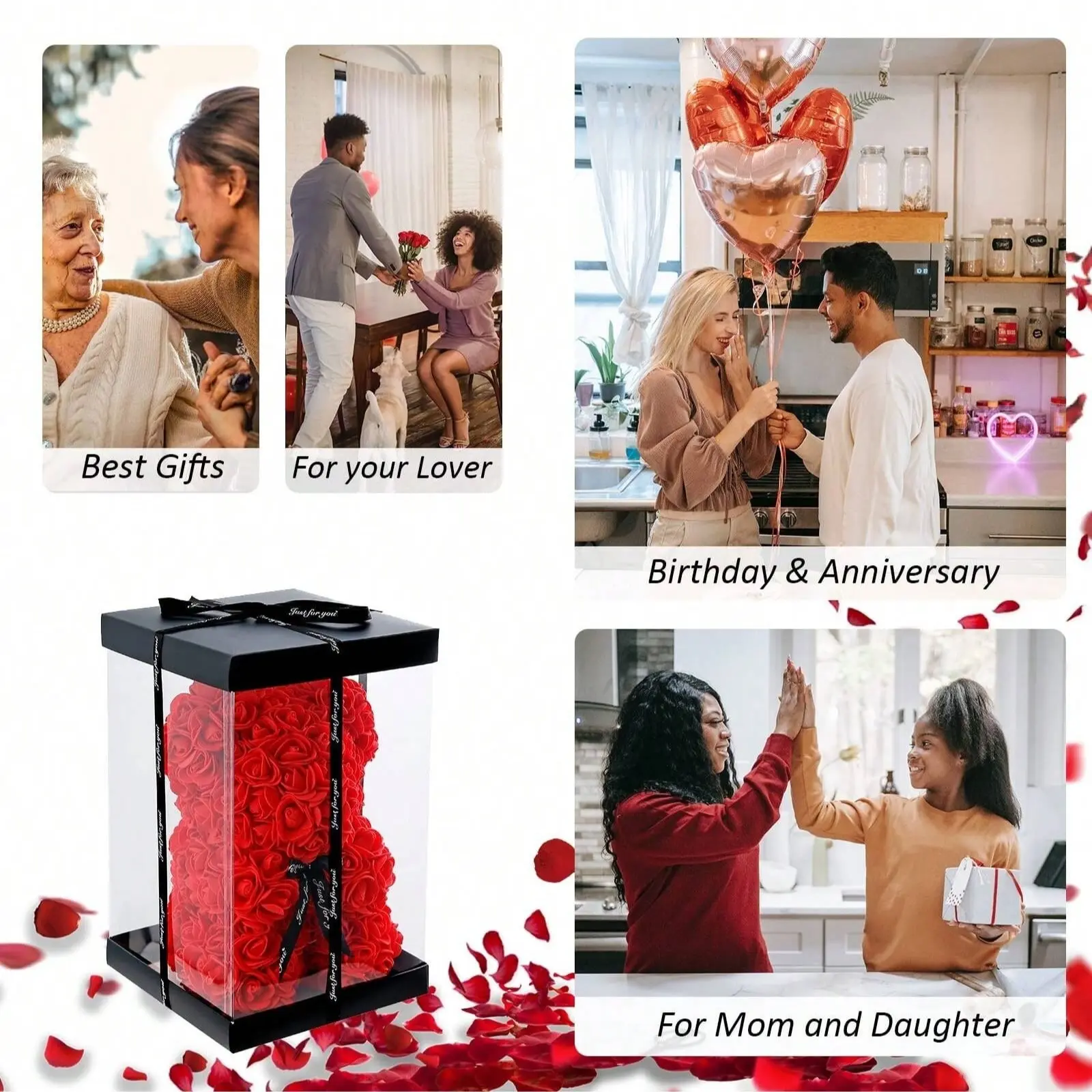 【Romantic Gift Set】: Perfect for Valentine's Day, birthdays, weddings, and anniversaries with a floral teddy bear.