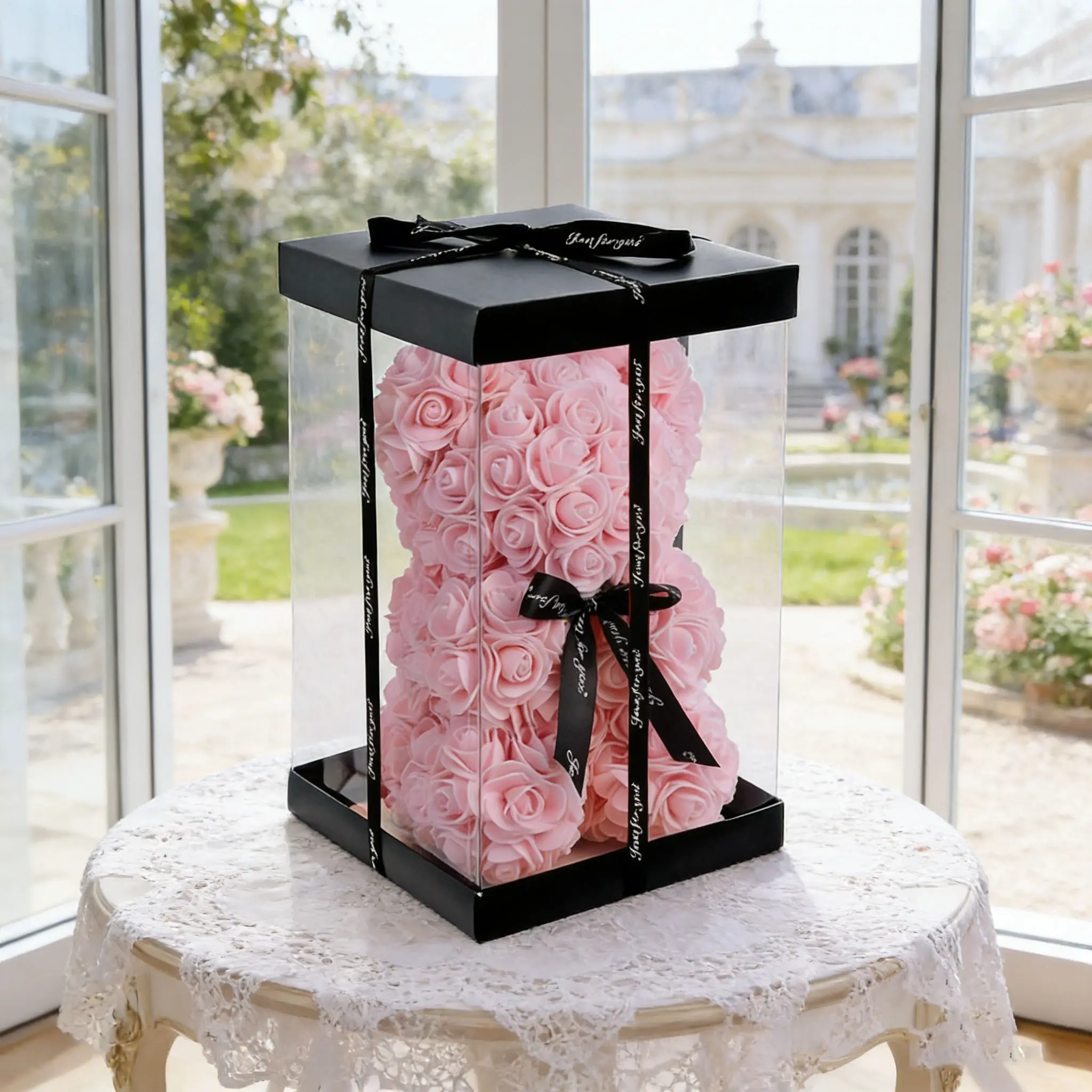 Limited Time Low Price, Light Rose Bear Set, Valentine's Day Gift for Girlfriend, Teddy Bear with Box and Card, Romantic Decoration