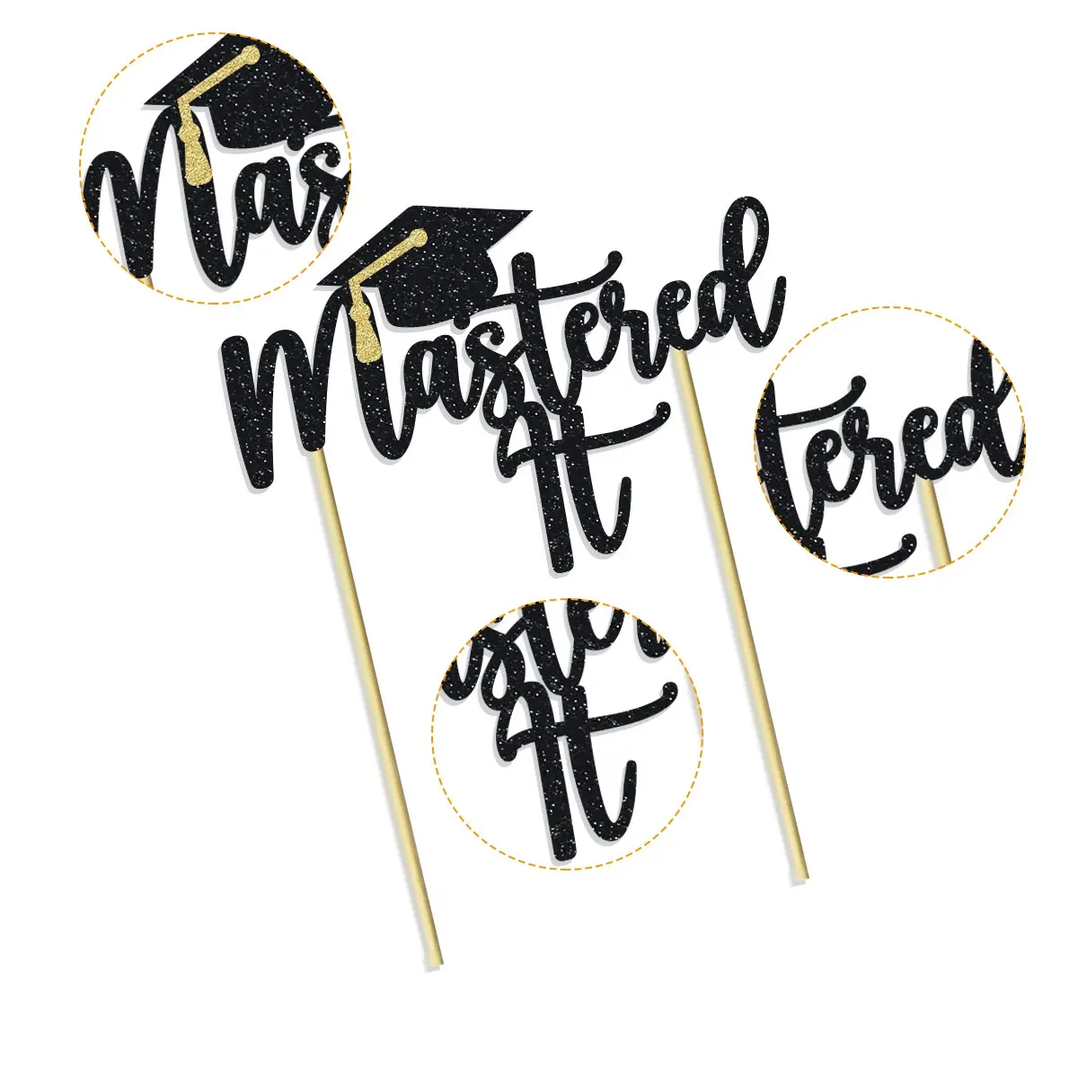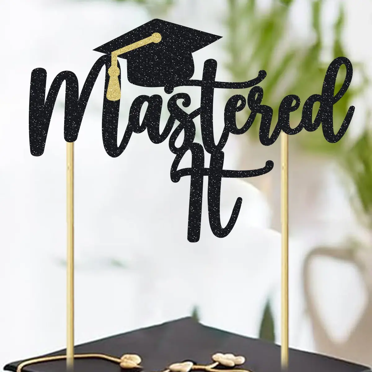 1pc Black Glitter Mastered It Cake Topper College Grad Congratulations MBA Graduation Party Decorations Supplies