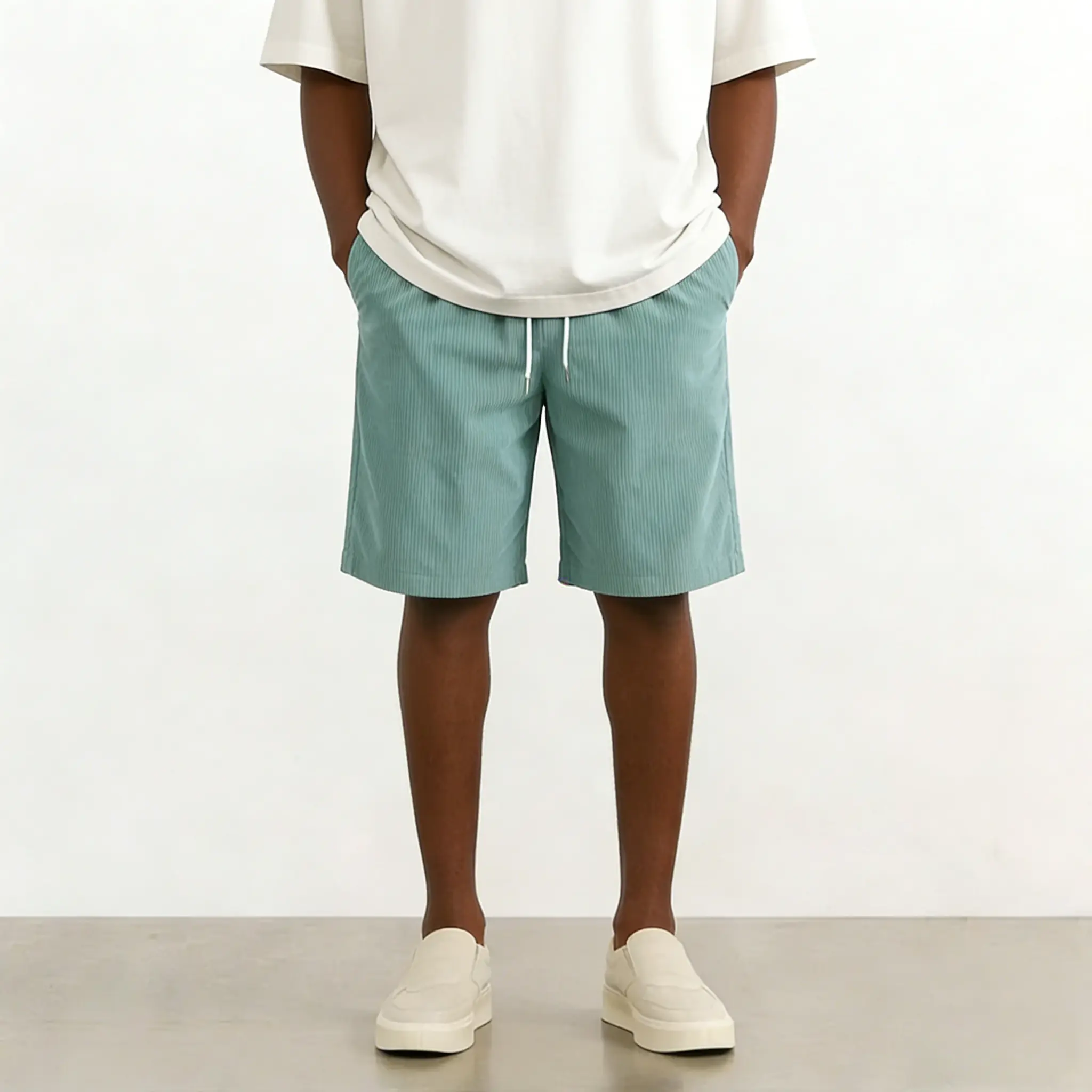 Men’s corduroy casual shorts, loose straight cut, summer minimalist versatile beach shorts