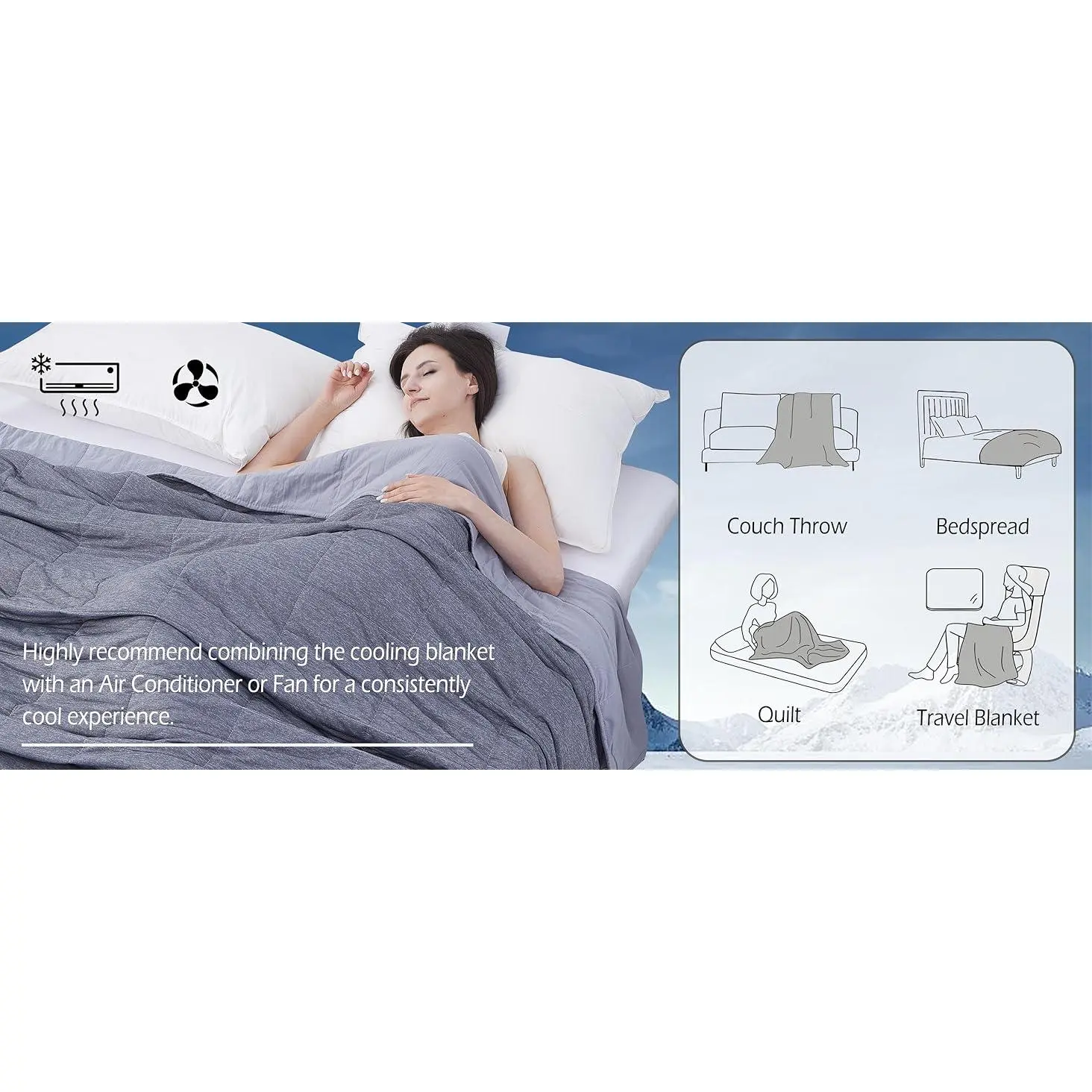 [Instant Cooling & Breathable Bedding]:Experience relief from night sweats with our advanced cooling technology Q-Max>0.439.This breathable microfiber fabric can keep you cool and dry all night long.Perfect for hot sleepers and all season use.[Ultra-Soft & Skin-Friendly Fabric]:Made from premium microfiber, this blanket is luxuriously soft and gentle on sensitive skin.[All-Season Versatility]:Lightweight yet cozy, this blanket adapts to any season.Use it as a summer bedspread, an air-conditioning throw, or a layered cover in cooler months.Ideal for beds, couches, or outdoor activities.[Easy Care]:Machine washable.For best results, wash separately in a laundry bag to prevent snagging.Avoid bleach and ironing.Air dry flat or hang to preserve the cooling fibers-tumble drying not recommended.[Hot Sleeper Approved Design]:Reduce overheating, this blanket is a change for those who struggle with night sweats.Available in Twin (59"x79") and Queen (79"x86") sizes-perfectly fits beds, couches, or sectionals.