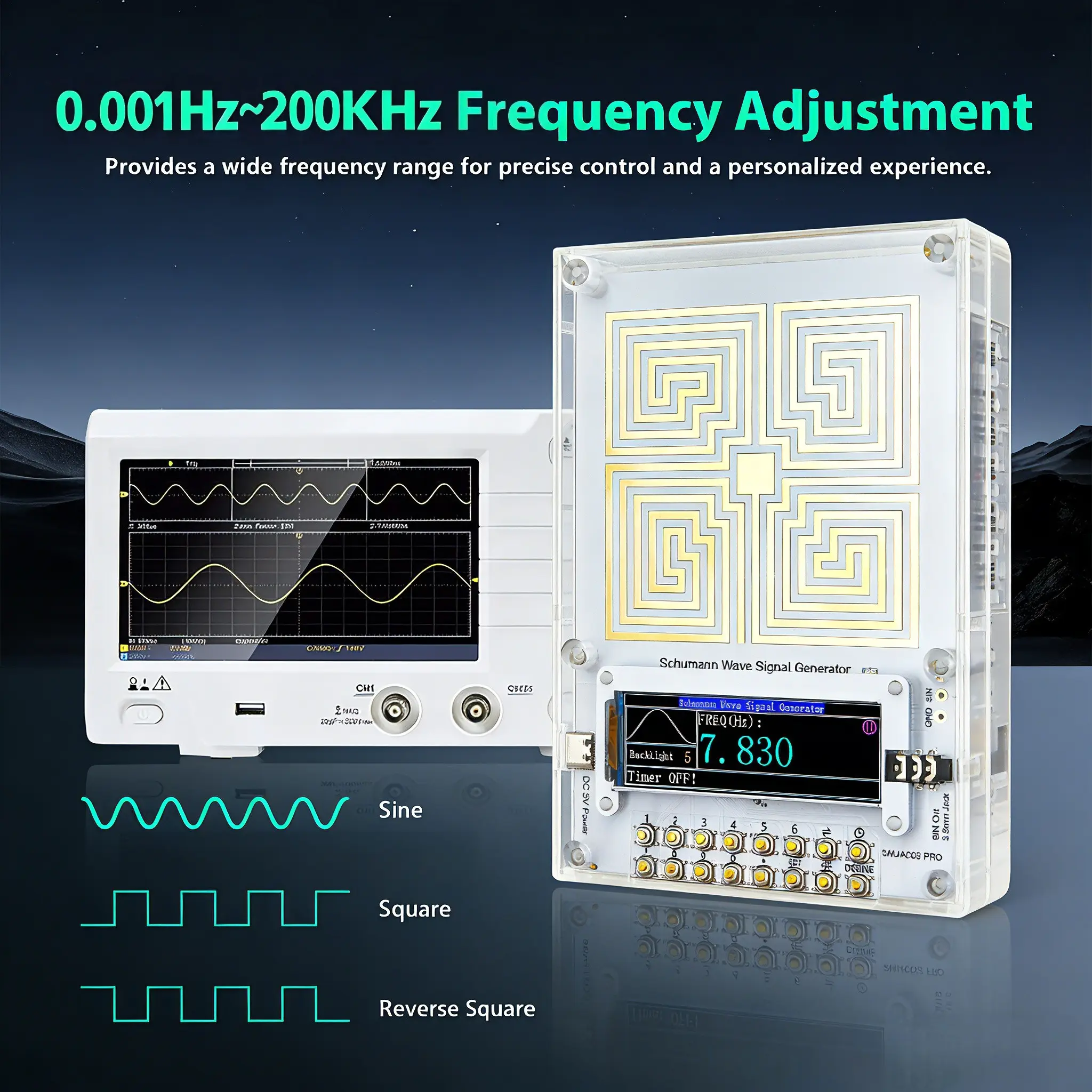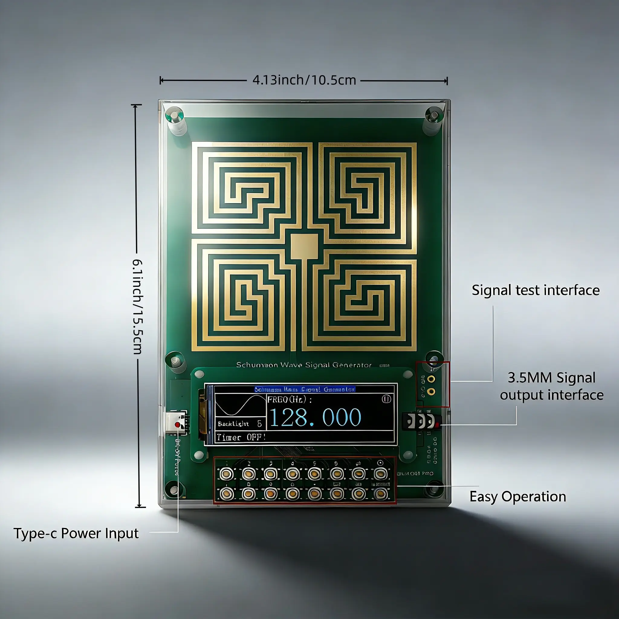 This product not only outputs a 7.83Hz Schumann wave, but also allows frequency adjustment within the range of 0.001Hz to 200kHz. It features an LCD TFT display for enhanced stability and stronger anti-interference capabilities.