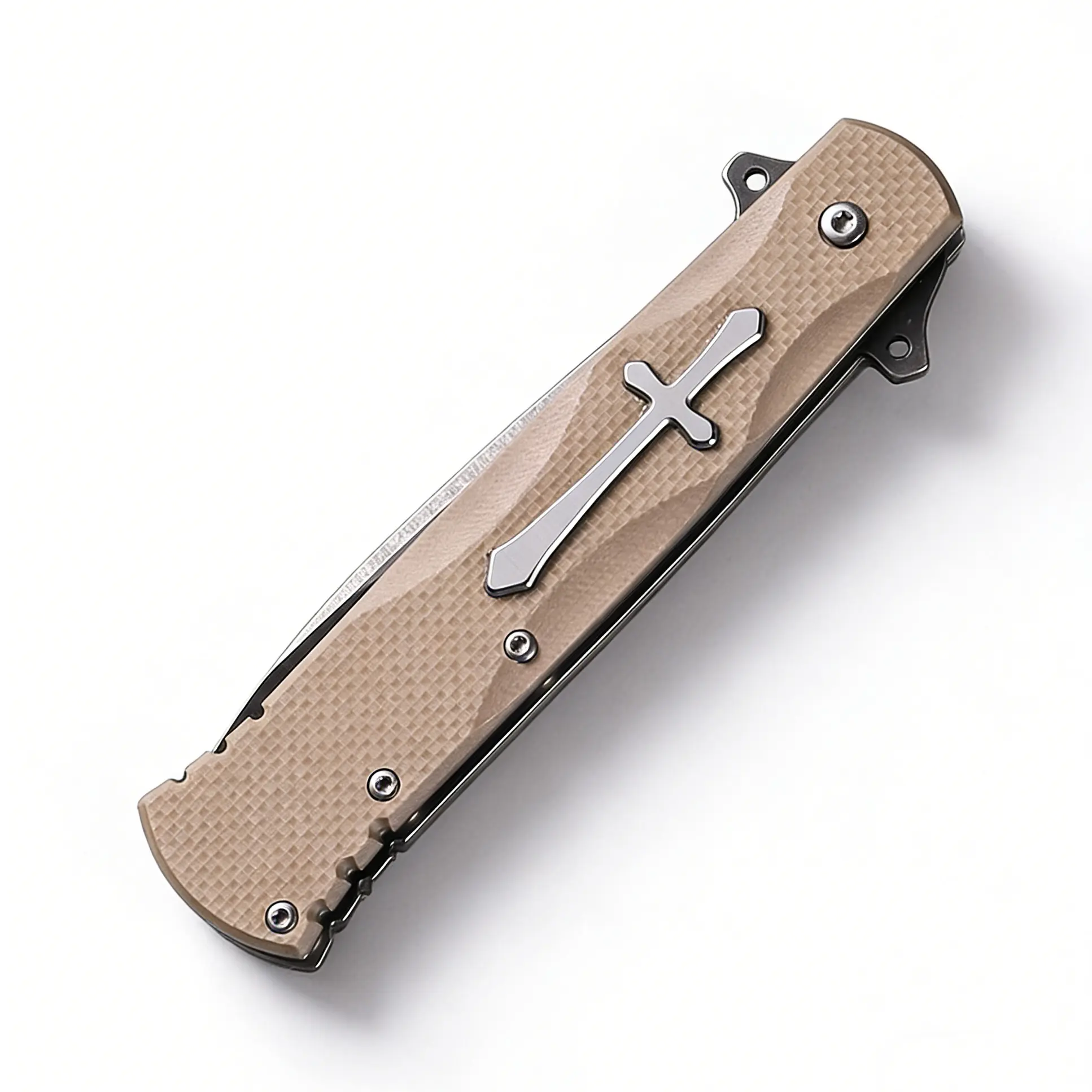 This utility tool features a Christian cross accent, adding a meaningful touch to your daily carry. Perfect for those who appreciate symbolic design in their tools. The cross is a standout feature, making it more than just a tool.