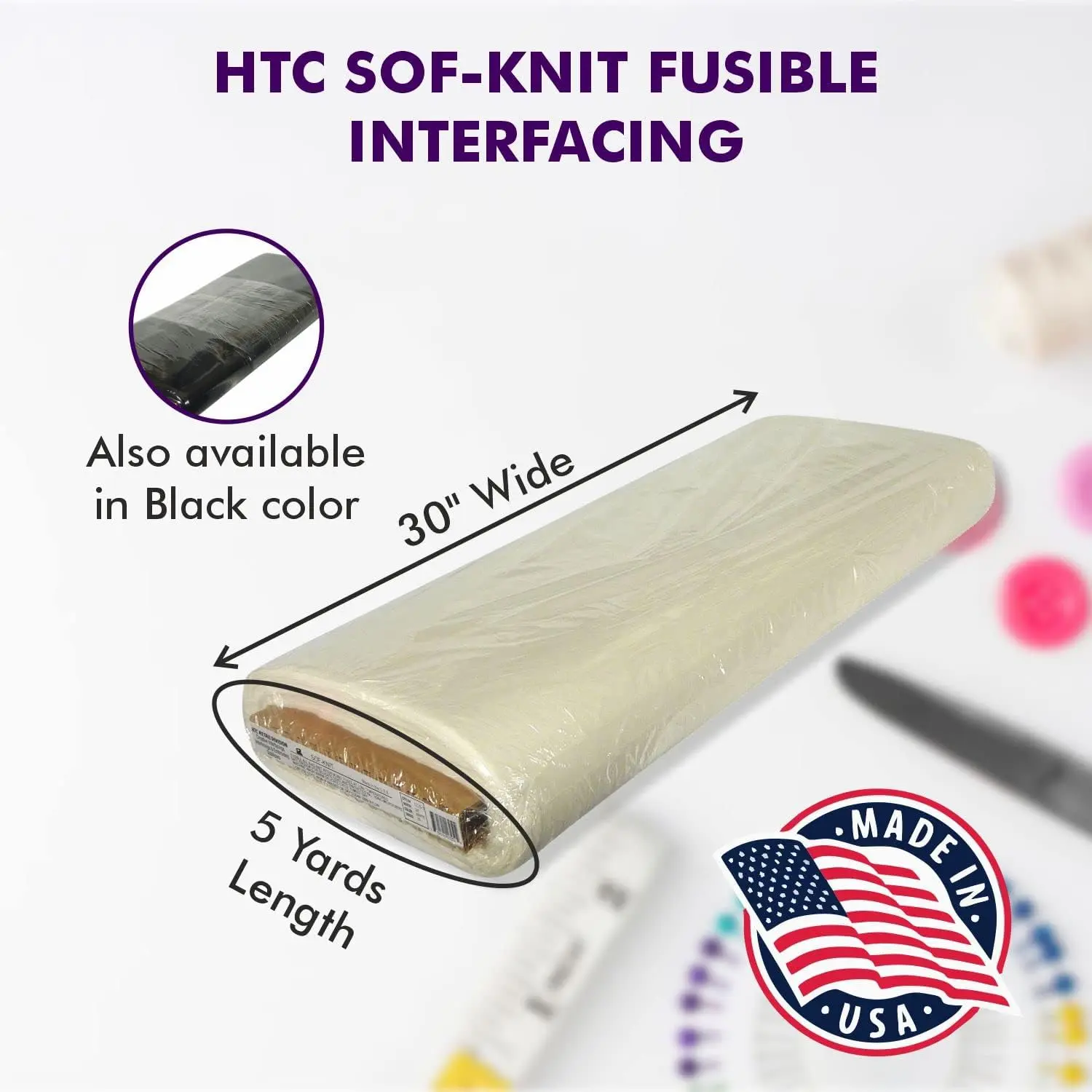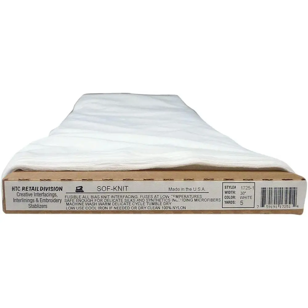 MADE IN USA FUSIBLE INTERFACING: Looking for the highest quality American-made embroidery stabilizer?Look no further than USA-originated fusible fabric.It is made in the USA from 100% nylon & has an "All Bias" stretch for ultimate flexibility.This interfacing is great for use with knits & wovens, giving you the freedom to create without limitation.Sof-Knit is an all-bias stretch.Use our sewing interfacing & combine the two steps of lining & interfacing in one step for appropriate fabrics.COMFORTABLE & FRIENDLY: This stabilizer for embroidery is remarkably comfortable and friendly.Skip the lining step, while adding shape, body, retaining drapability, and a touch of opacity with our interfacing for sewing.This fabric interfacing is great for various applications, from everyday wear to special occasions.Sew-in interfacing allows your creativity to flow with both strength and comfort.You can add shape and collar to the blouse collar with HTC1725-1 interlining fabric.WIDE APPLICATION: You'll appreciate the convenience of having a fusible fabric with this product that can be applied to a wide variety of materials.Its 30-inch width and 5-yard length make it an ideal size for larger projects.With this product, you can easily adhere to leather, cotton, polyester, and other fabrics, allowing you to create whatever item you choose.HTC1725-1, made in the USA, provides an ideal solution for your crafting needs.EASY TO APPLY: You will appreciate the convenience of this woven fusible interfacing when you're looking for an easy-to-apply solution.Its quick and simple application process can save you time and effort, keeping your projects running smoothly.With this fusible interfacing for sewing, you get professional results, no matter the complexity of your project.Superpunch, a trusted supplier since 1996, provides a durable and reliable product.CUSTOMER SATISFACTION: Customer satisfaction is ensured with our machine embroidery stabilizers.This allows you to seamlessly add support and stability to your garments with ease.Its versatile and lightweight nature makes it a good choice for any project, helping you create strong and tailored garments.Our knit interfacing ensures a professional finish every time, helping you create beautiful garments with peace of mind.
