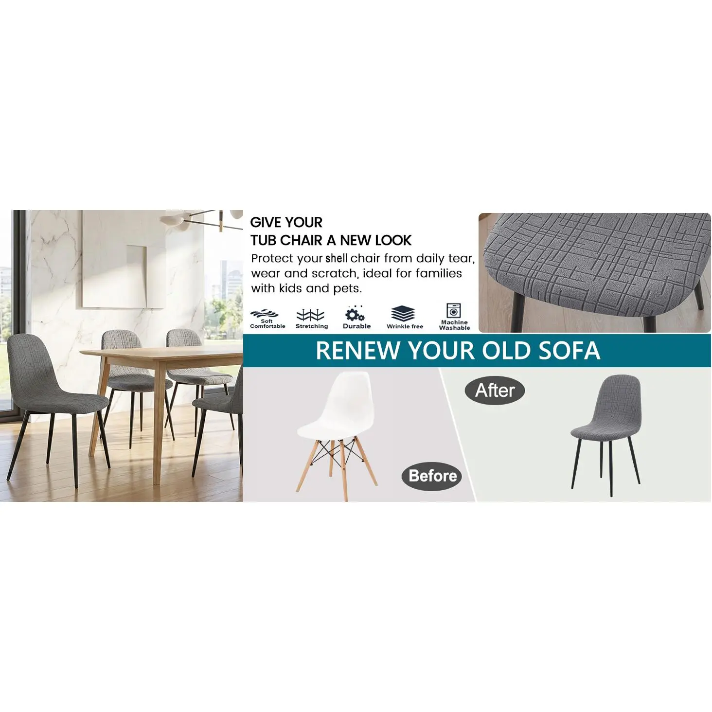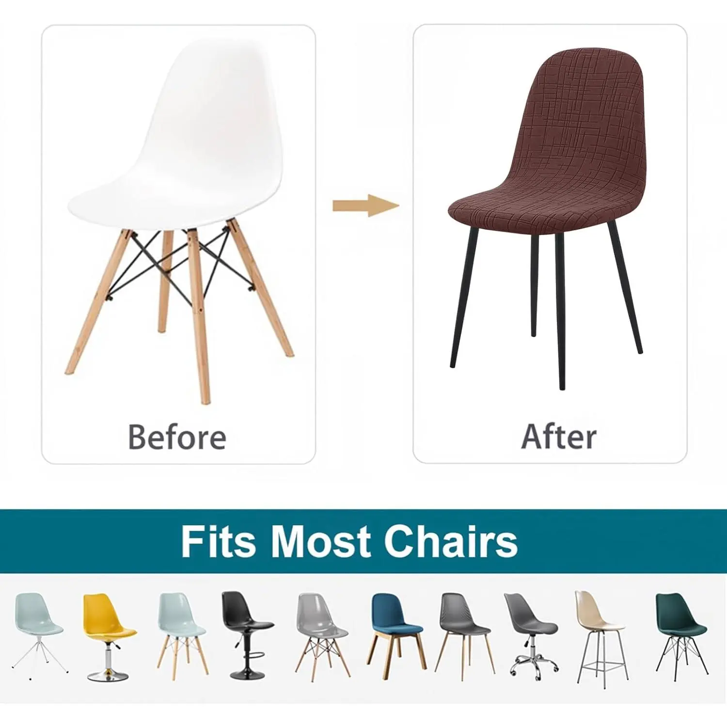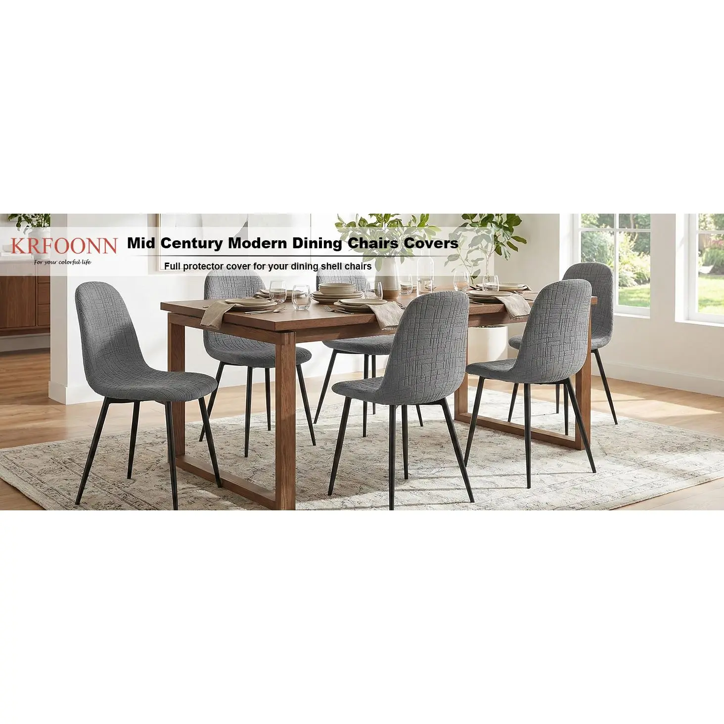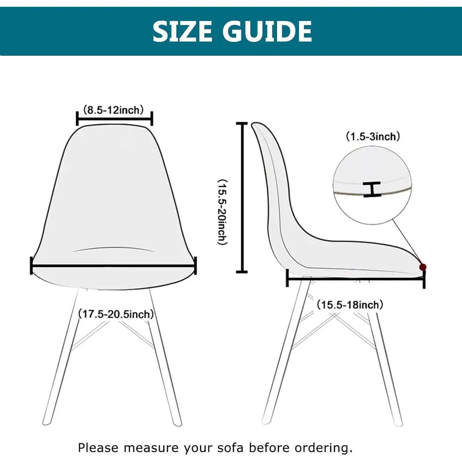 High Quality Shell Chair Cover: KRFOONN mid century modern dining chair covers is made of 92% polyester and 8% spandex.It is skin-friendly and breathable for all seasons, high stretchy and comfortable, wrinkle resistant and long lasting.It has elastic bottom for keeping in place firmly, will perfectly stretch to snug fit your shell chair seat, easily update your furniture.Great Fit: KRFOONN stretchable shell chair covers for dining chairs suitable for most mid-century modern accent chairs.Fit well for chair back height 15.5"-19", chair back width 8.5"-12", Chair Seat Width 17.5"-20.5", Chair Seat Length 15.5"-18", Thickness 1.5"-3".Please measure your chair seat size before placing an order.Full Protection: Our armless kitchen chairs cover provide all-round protection for your dining chair.The polyester shell side chair slipcovers is 360 all-inclusive, pnot only not only fully protects the surface of your cloth dining chairs from kids food, spills, stains and scratches, will also give your old, damaged, or ugly chair a new look, always keeping your furniture fresh and clean.Multiple Choice: KRFOONN dining room chair covers protector keep the shine of the chair, have variety of patterns design, transform your old, damaged or ugly chair a new look, change household style at will need not expend huge cost.Ideal for families with children and pets.Easy to Care: Removable dining room chair covers slipcovers set of 4 can be hand wash or machine washable in cold water, no bleach, Ironing free. This chair upholstered protectors are great for kitchen, dining room, and also be used in hotels, restaurant, wedding celebrations, banquet, party decorations, ceremony, coffee shops and more.