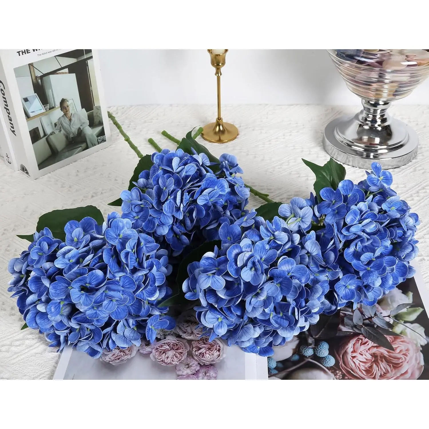 ·Package: 4pcs real touch hydrangea artificial flowers.(Vase is not included)